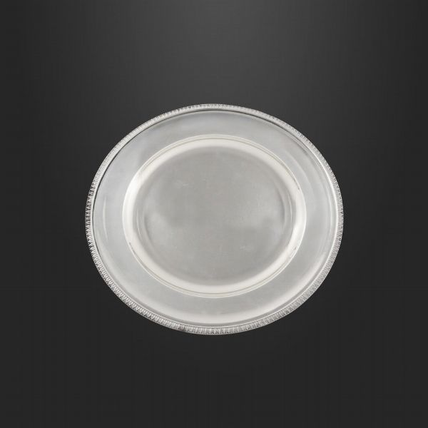 in argento a corpo liscio con bordura cesellata a palmette, del peso complessivo di gr. 2.472.