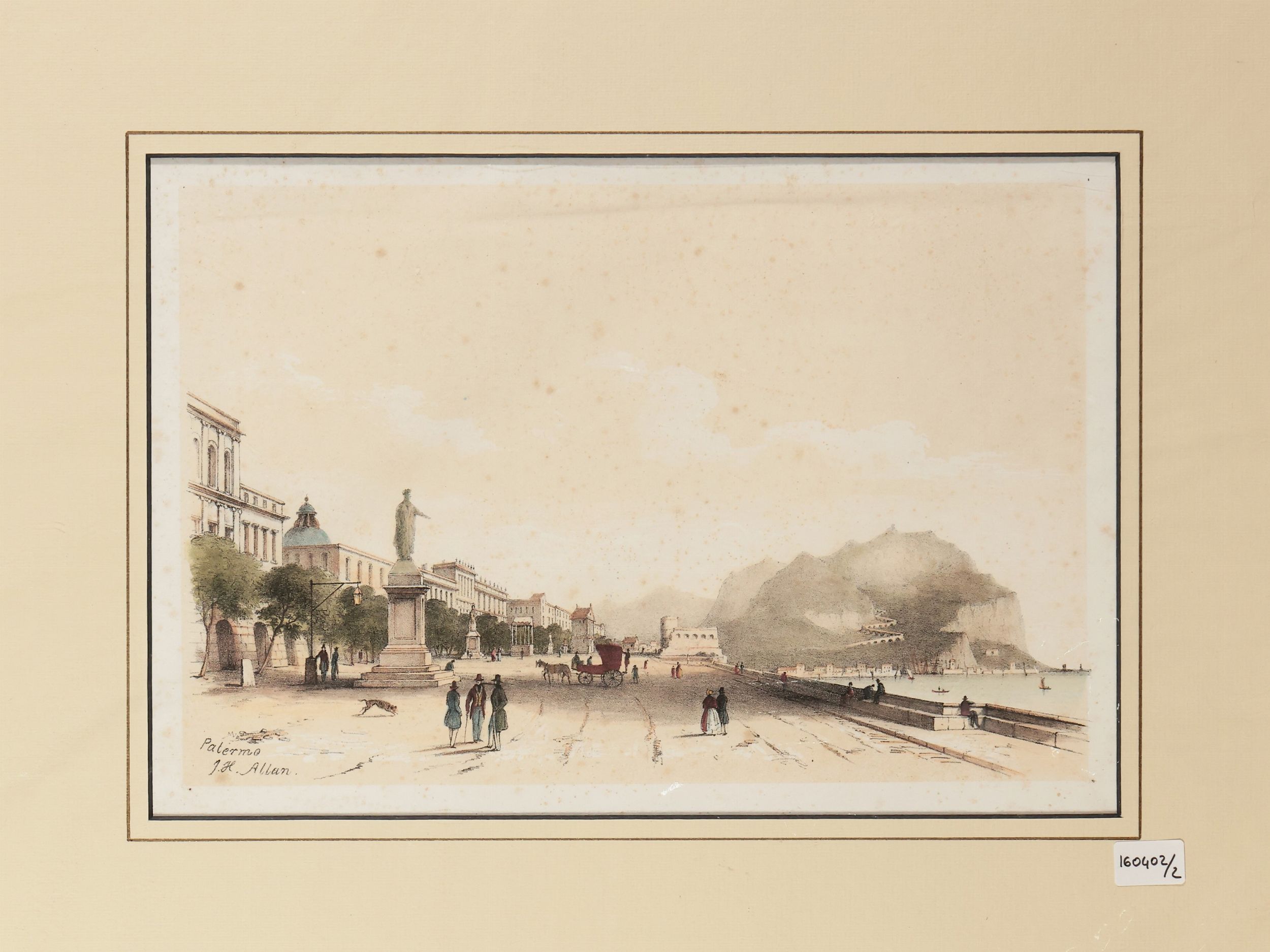 XIX secolo due litografie, colorate, con passe-partout, tracce di foxing
