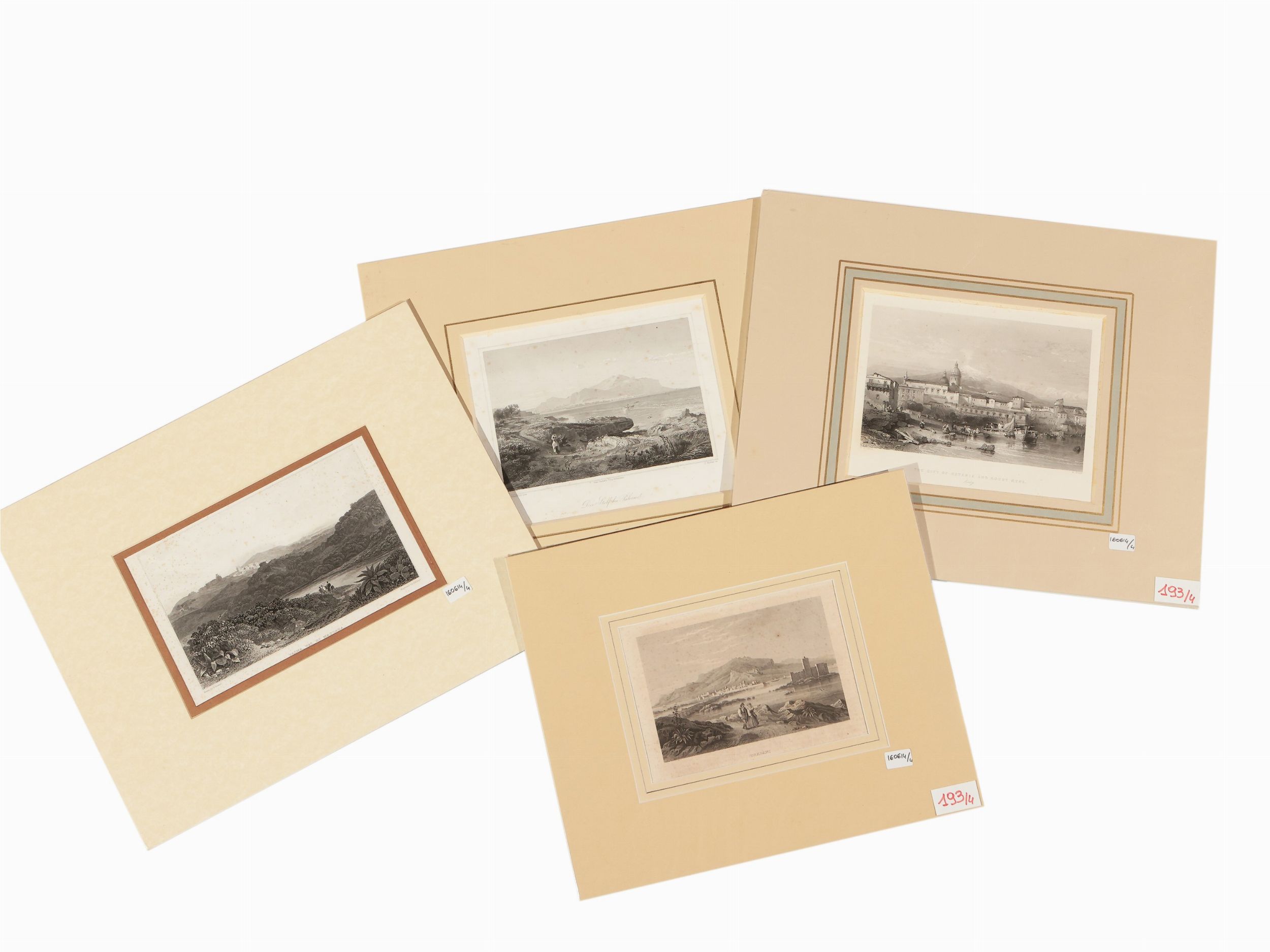 XIX secolo quattro incisioni su acciaio, con passe-partout, tracce di foxing