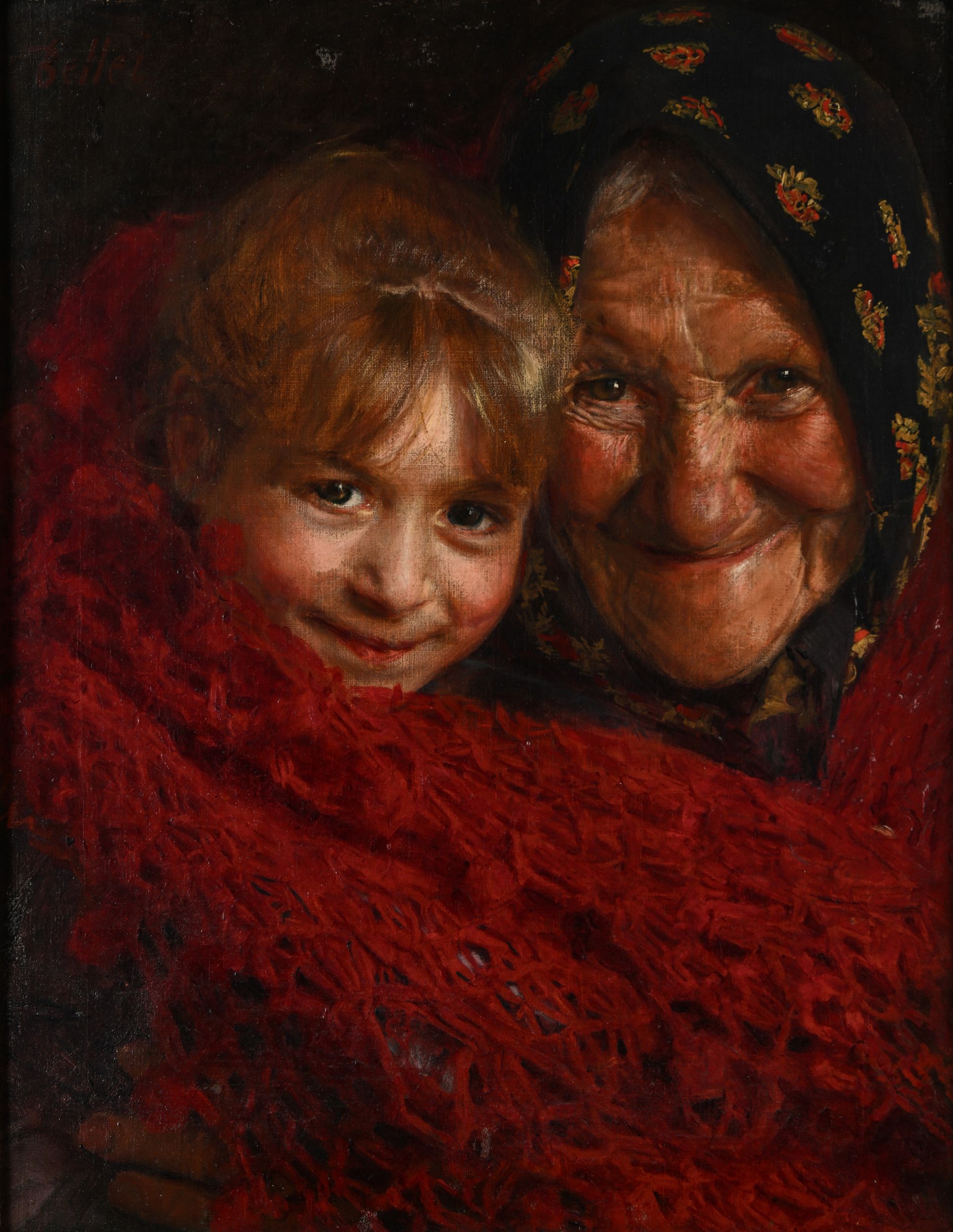 Firmato in alto a sinistra 'Bellei'; sul retro etichetta con titolo in inglese 'Grandmother's Pet'
