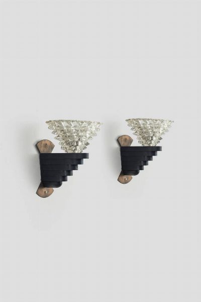 Struttura in ottone e legno verniciato e diffusore in vetro rostrato. Anni '50 h cm 26x20x22