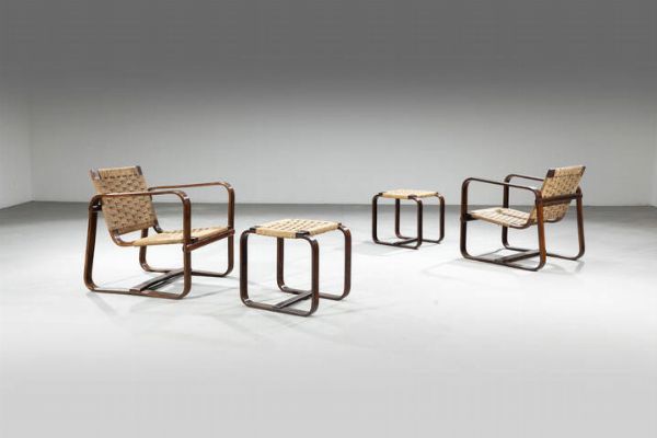 Coppia di poltrone con pouff