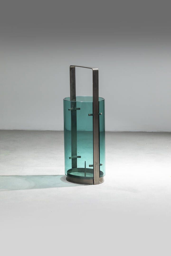 Struttura in metallo brunito e particolari in vetro colorato. Prod. Fontana Arte anni '60 cm 65x28 5x22