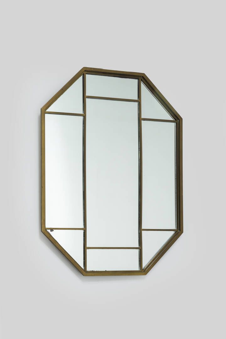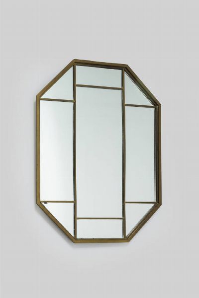 Ottone e vetro specchiato. Anni '70 cm 94x69 5