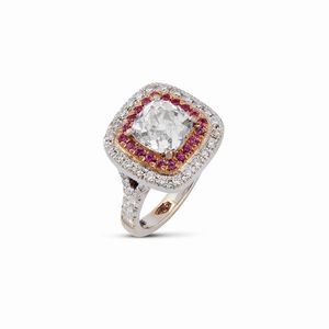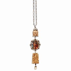 COLLANA CON SMERALDO COLOMBIANO in oro rosa 18kt, da cui pende un elemento centrale a disco in pietra recante [..]