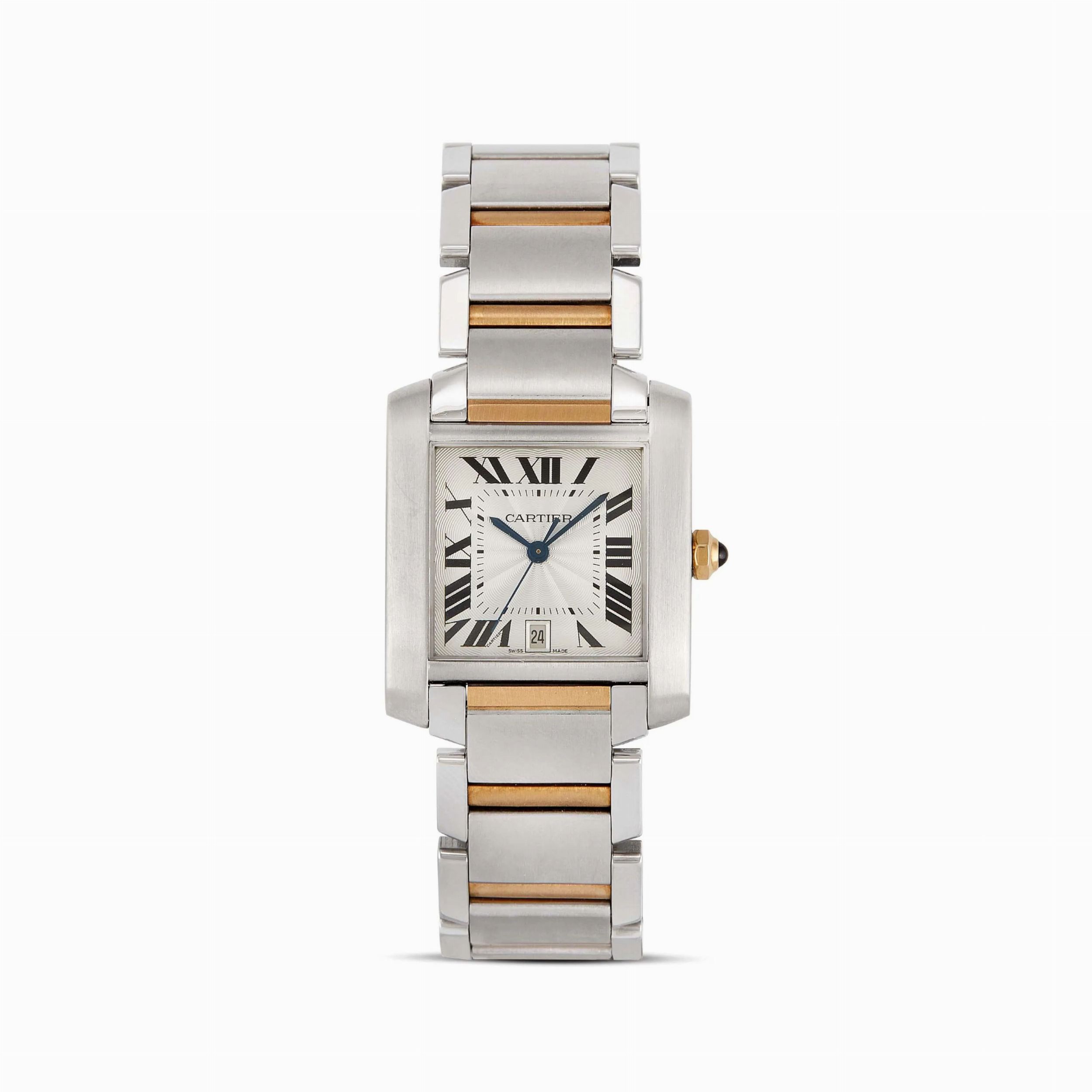 CARTIER TANK FRANCAISE BIG SIZE STAINLESS STEEL AND GOLD WRISTWATCH