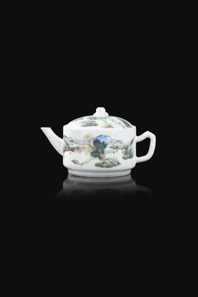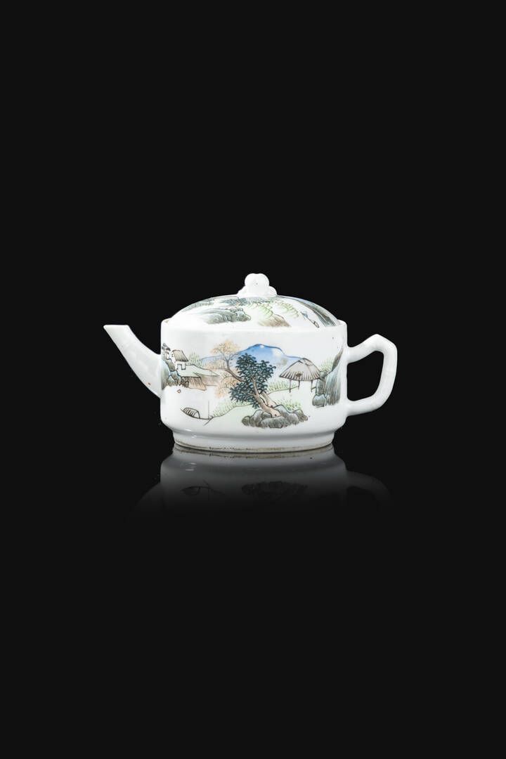 Teiera in porcellana Famiglia Rosa con decori paesaggistici e iscrizioni Cina [..]
