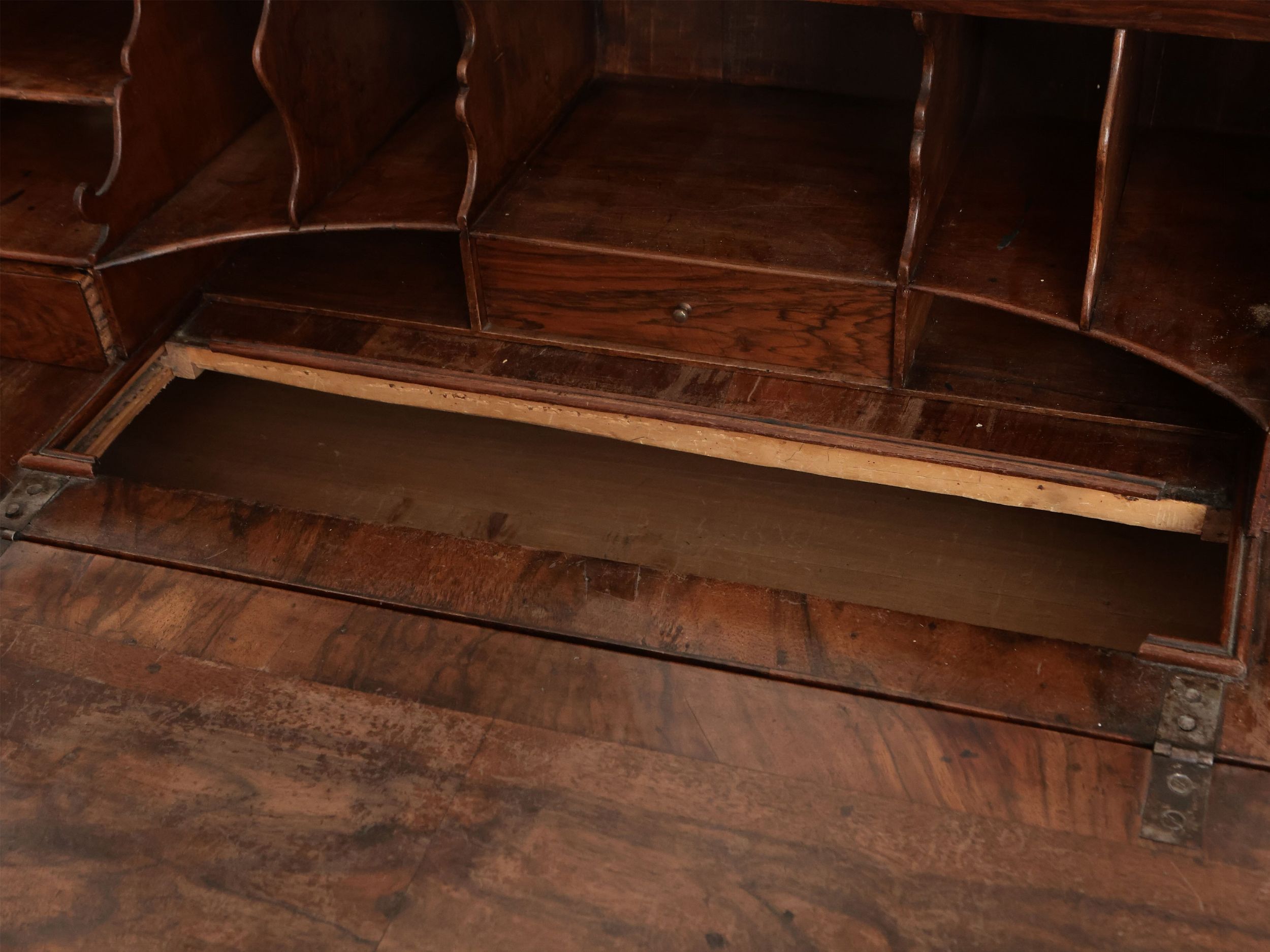 XIX secolo sportello a calatoio a celare scarabattolo con cassettini, vani a giorno e segreto, tre cassetti sul fronte dritto, piedi a mensola