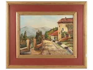 cm 50x70 XX secolo olio su cartone, firmato, titolato e firmato al verso, in cornice
