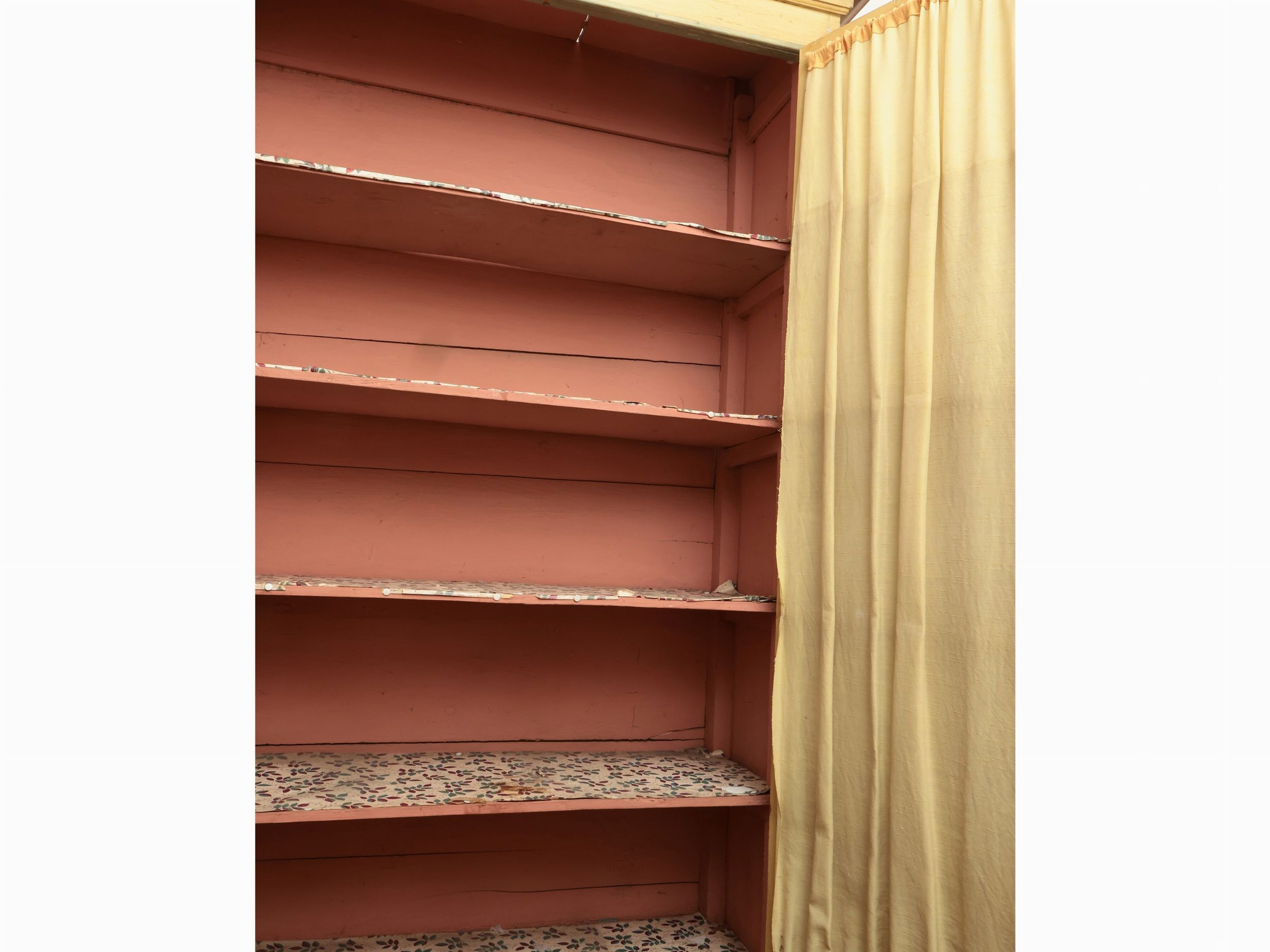XIX secolo con profili nei toni del verde e del rosso, quattro ante a vetro nella parte superiore centrate da vano a giorno centinato, otto sportelli nella inferiori, piedi a cipolla, alcuni difetti