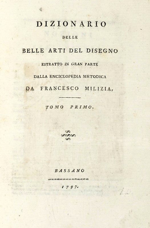 2 volumi in-8° (mm 200x135). Opera in barbe, con lievi e diffuse fioriture marginali. Legatura coeva in cartonato, con titoli manoscritti su tassello cartaceo al dorso. Ex-libris applicato al verso di entrambi i frontespizi. SI AGGIUNGE: Venuti Ridolfino, Risposta alle reflessioni critiche sopra le differenti scuole di pittura... Lucca: per il Busdrago, 1755.