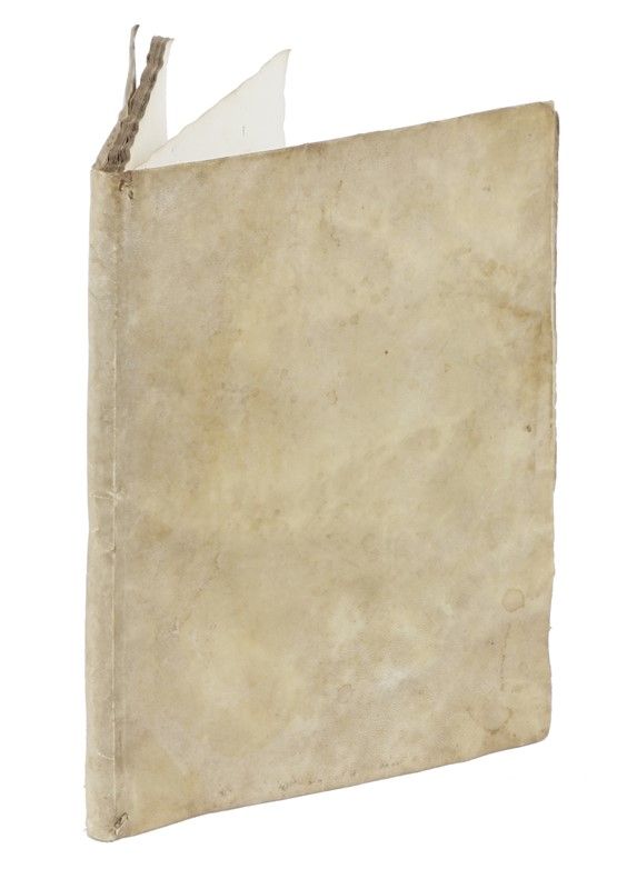 In-4° (mm 230x173). Pagine: [8], 55, [3]. Frontespizio con marca xilografica, diagrammi geometrici nel testo. Carte finali brunite in modo pallido e con un piccolo alone marginale, piccola galleria di tarlo al margine interno del fascicolo A. Pergamena flessibile coeva (corpo del testo quasi sciolto dalle cerniere).