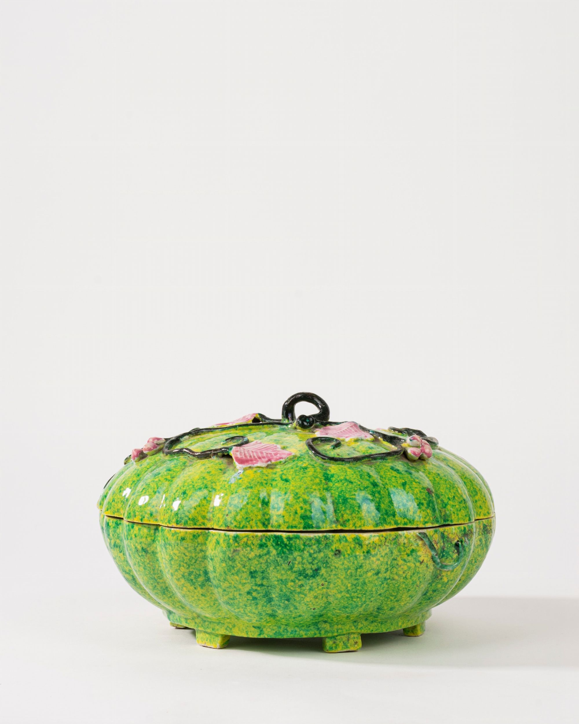 Ciotola in ceramica policroma a forma di zucca con coperchio, Cina secolo XX