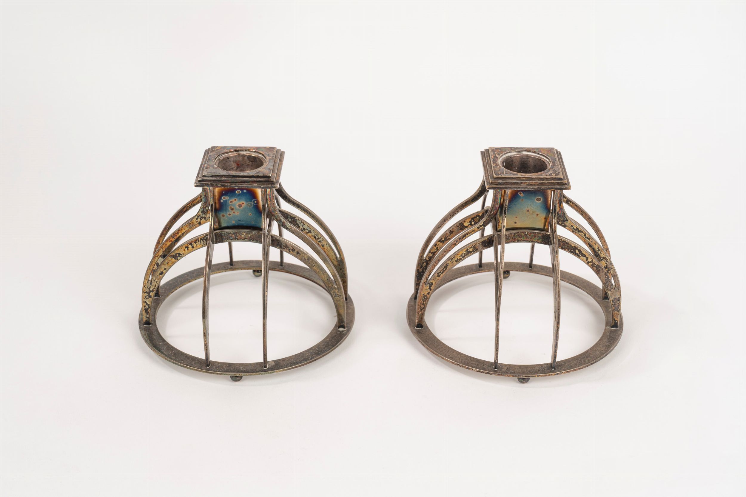 Coppia di candelieri in metallo argentato, Alessi