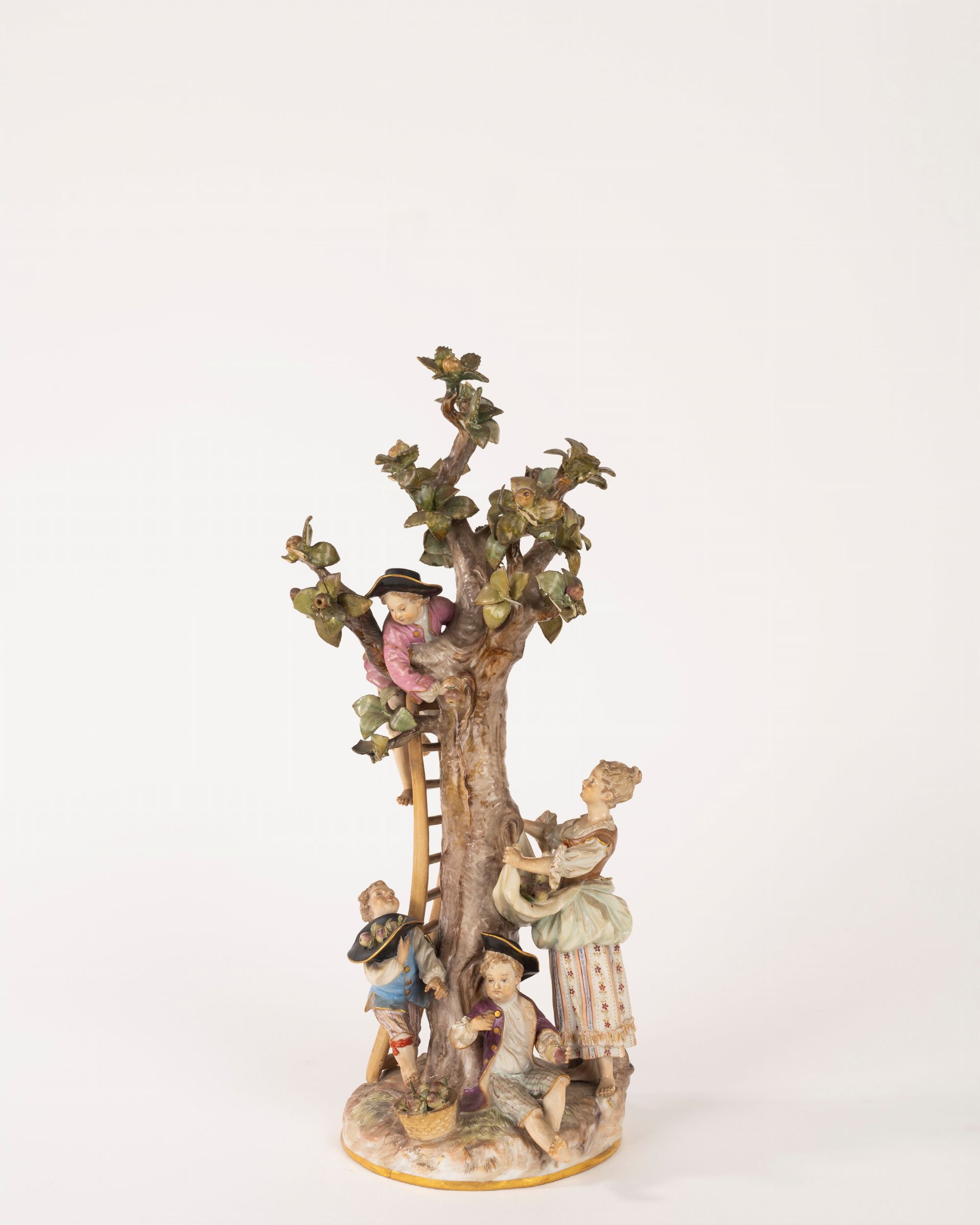 Gruppo in porcellana policroma raffigurante la raccolta delle mele, manifattura [..]