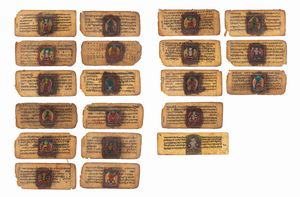 (misure diverse) Nepal, secolo XIX raffiguranti diverse rappresentazioni del Buddha e Bodhisattva; al retro&nb [..]