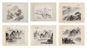 Cina, secolo XX Raffiguranti paesaggi montani con pagode.