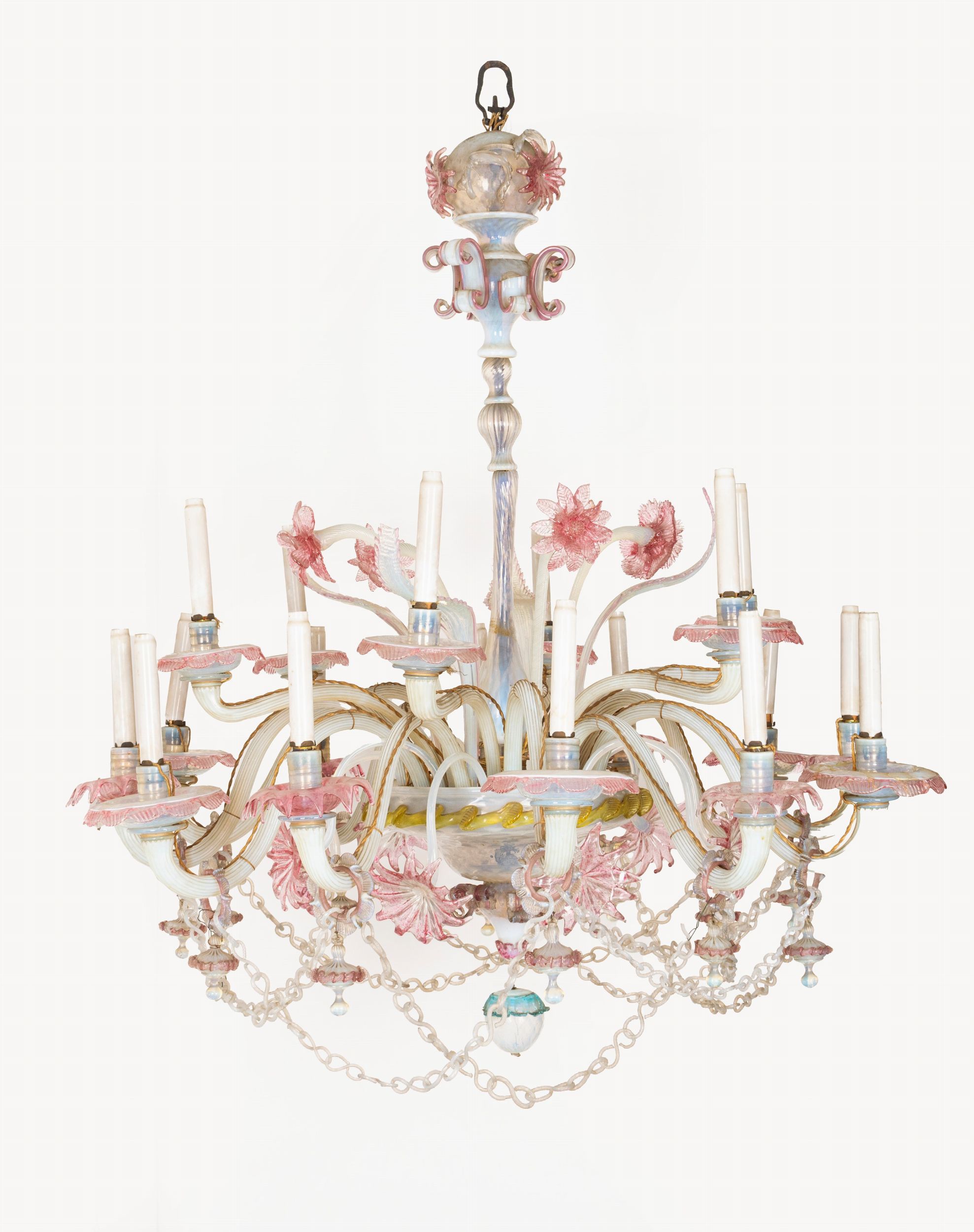 Lampadario in vetro soffiato di Murano policromo