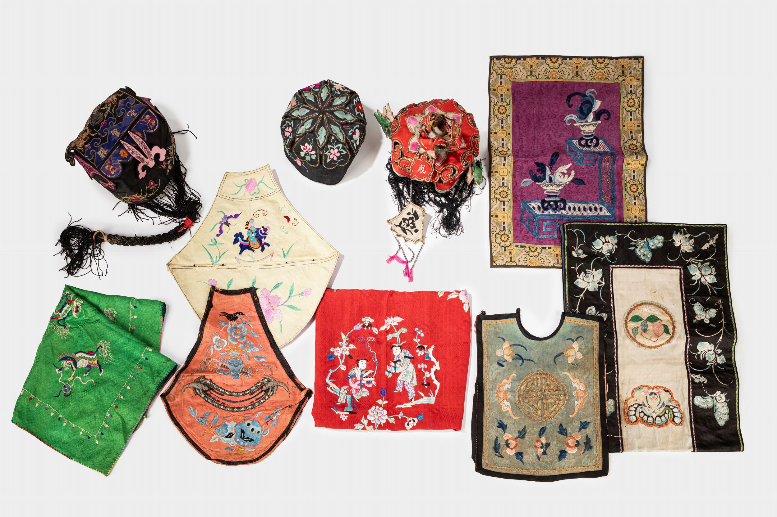 Lotto composto da sette tessuti e tre cappellini