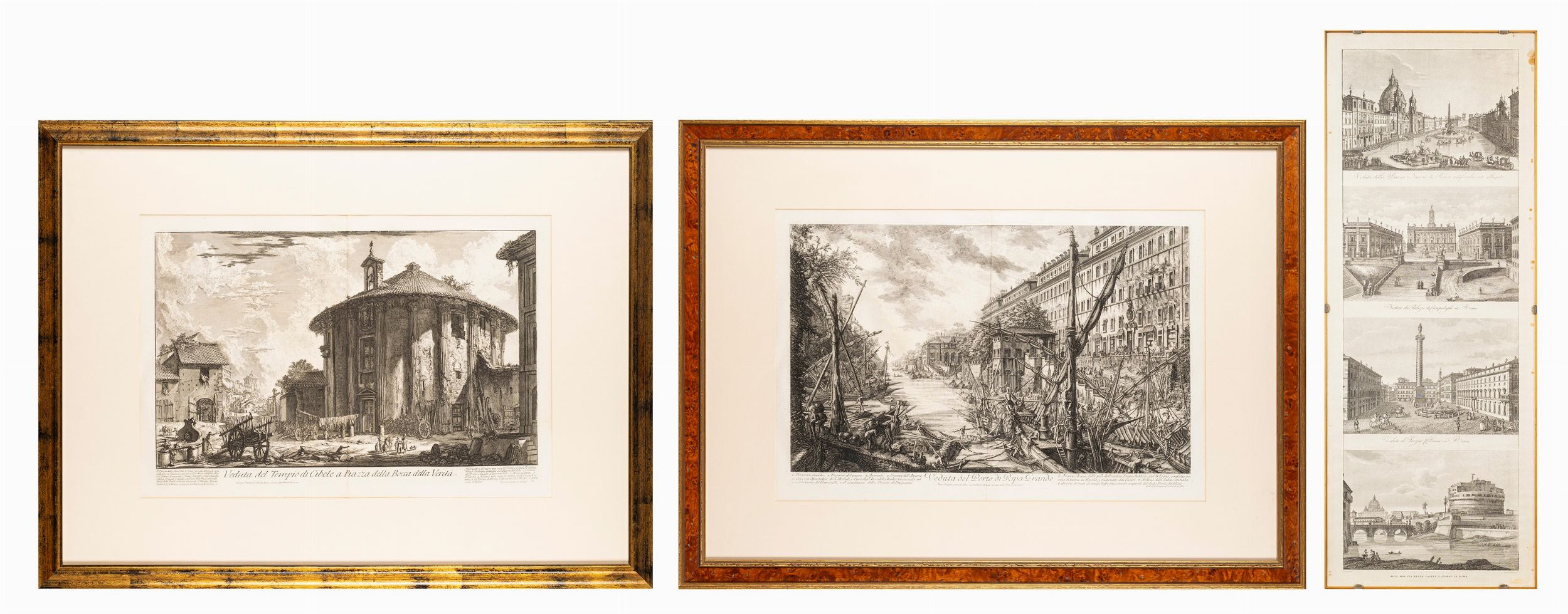 cm 74,5 x 98 (piazza Bocca della Verità ); cm 72 x 97 (veduta del porto di Ripa Grande); cm 87,5 x 33 (quattro vedute)