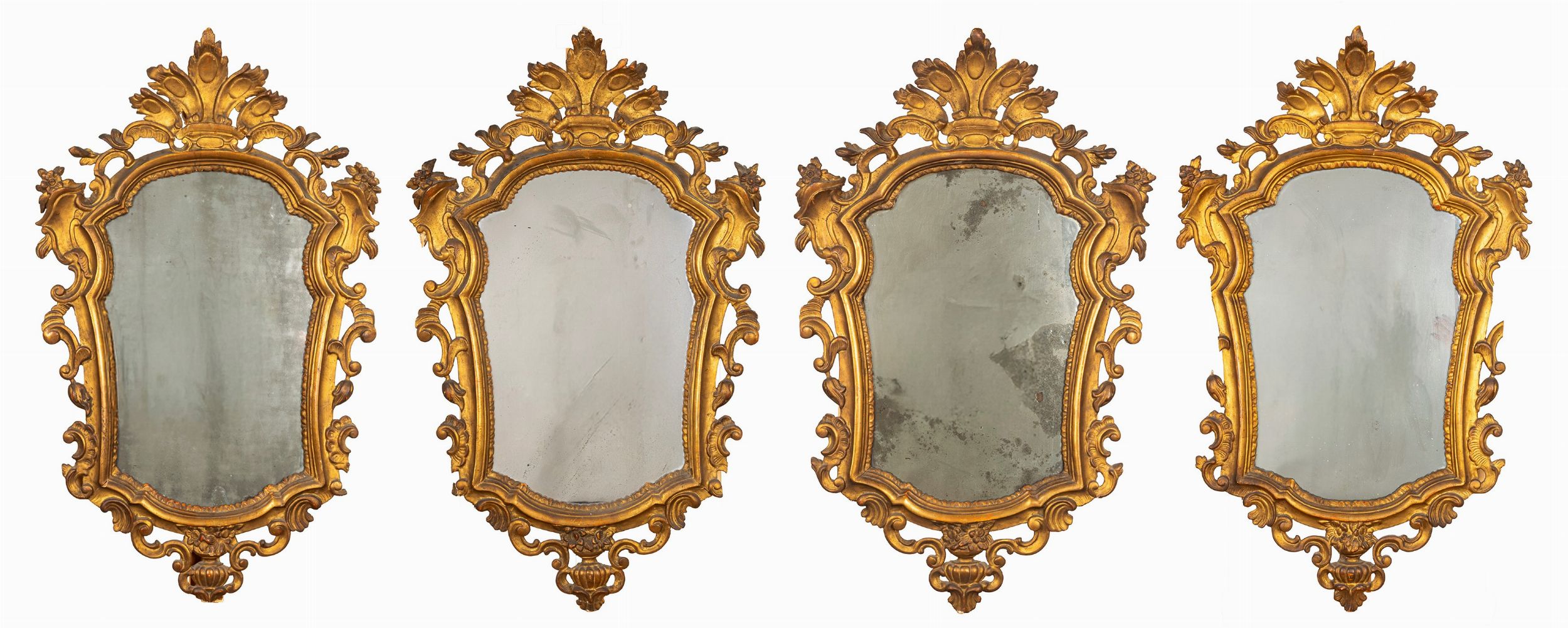 di forma sagomata, in legno intagliato e dorato a volute fogliate e fiori (difetti e restauri)