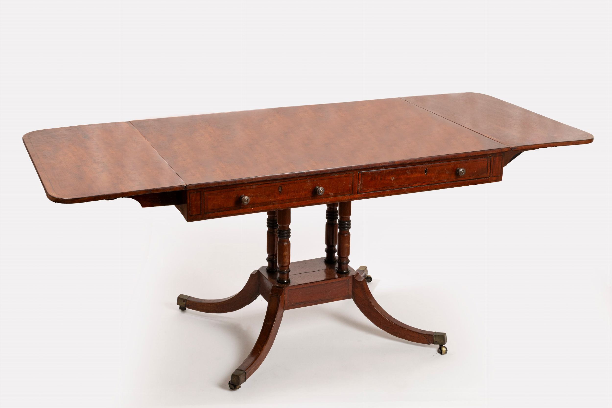 Tavolo da centro ad alette lastronato in mogano. Secolo XIX