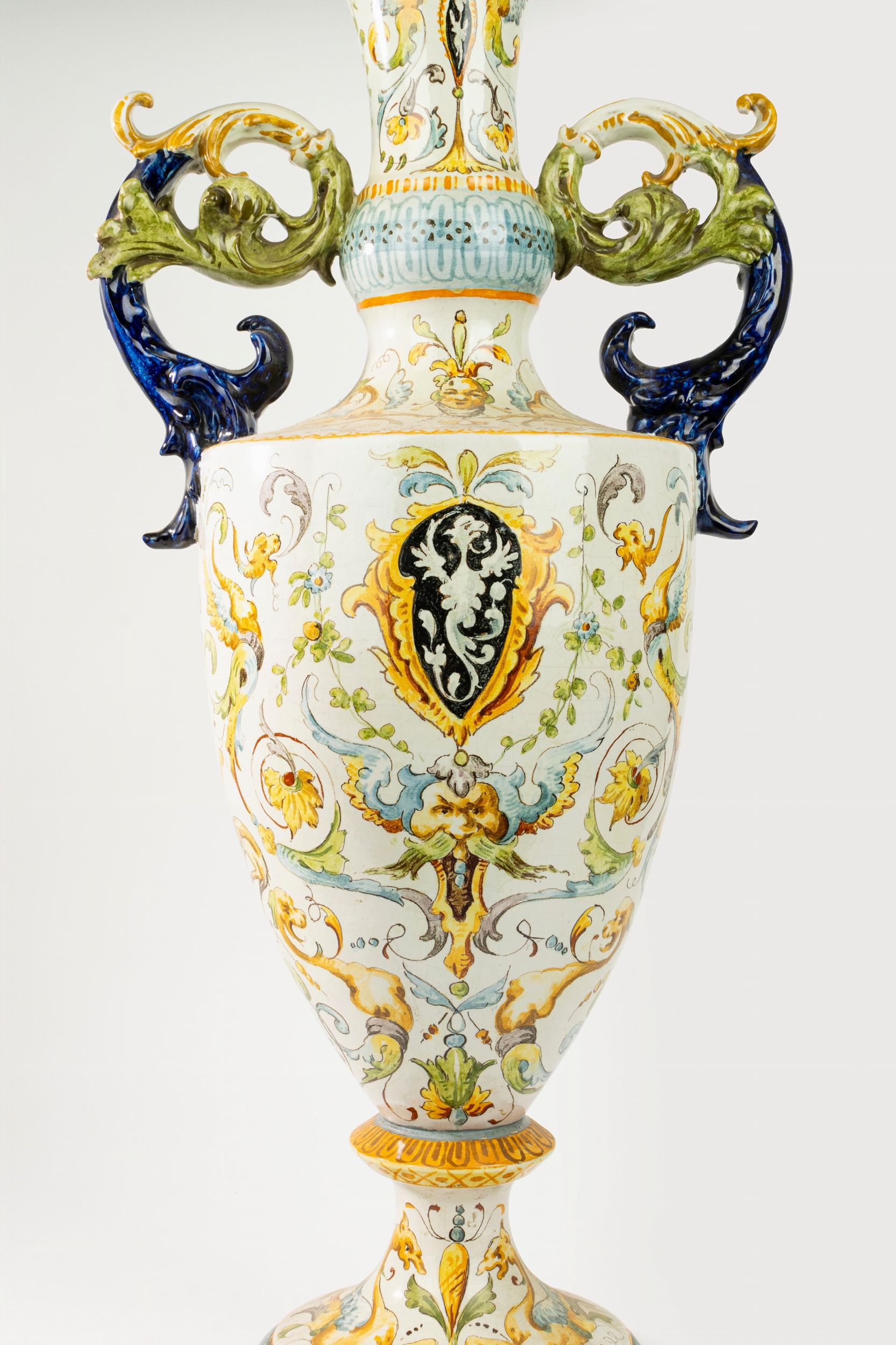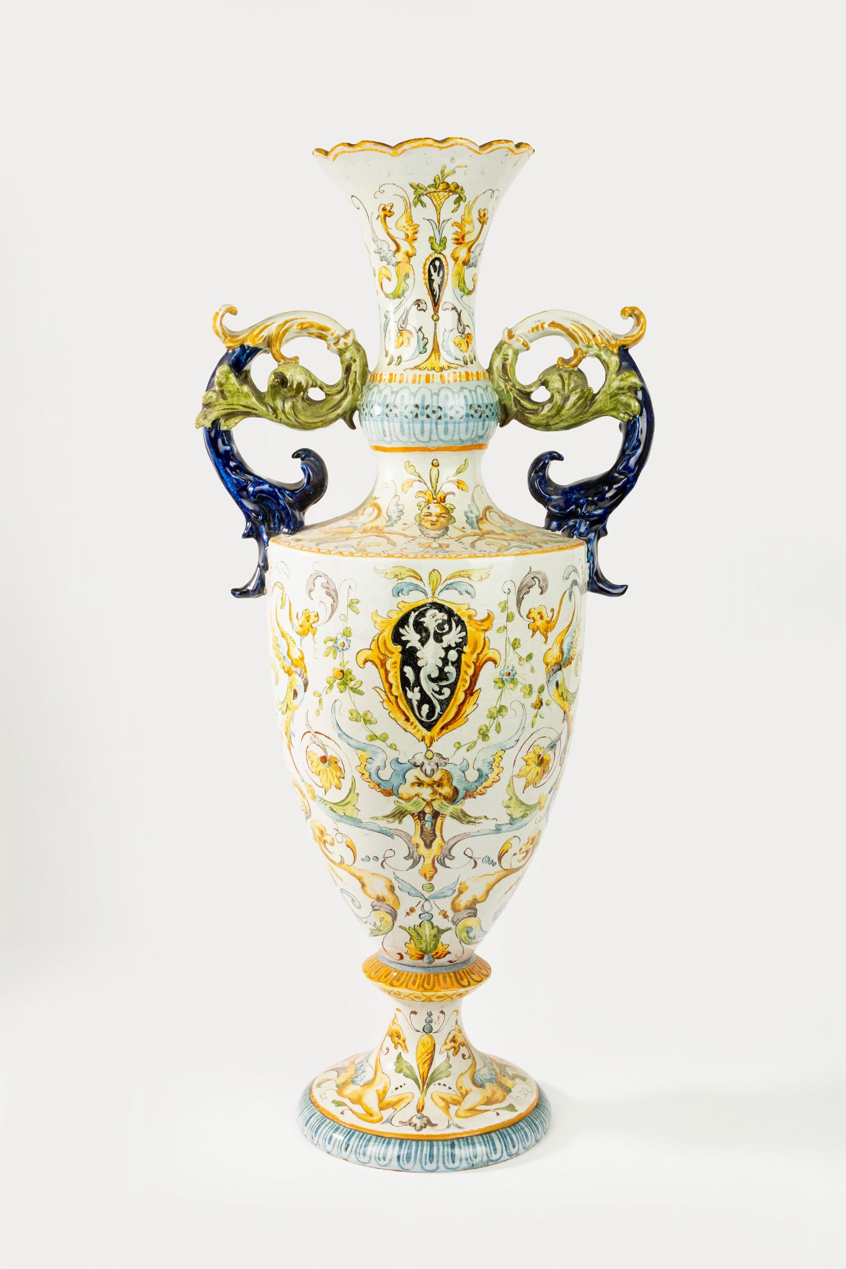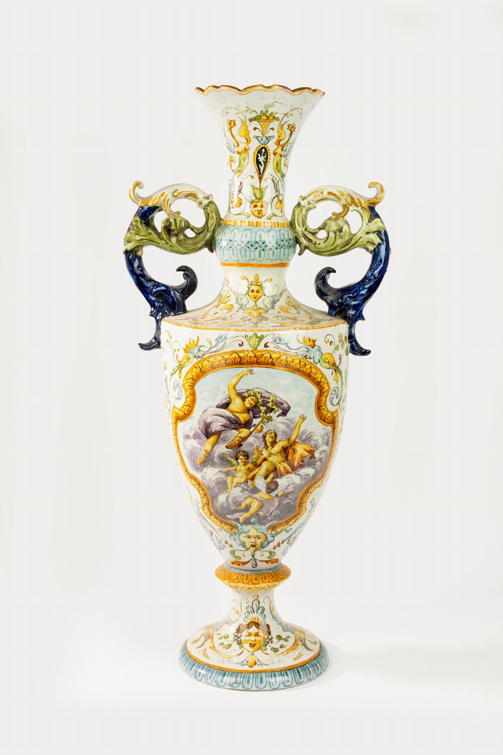 Vaso biansato in maiolica policroma, manifattura Mollica, Napoli, fine secolo XIX/inizio [..]