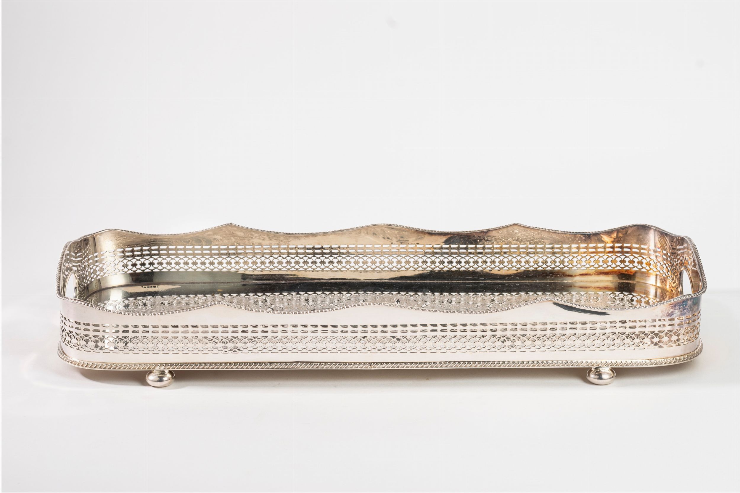 Vassoio rettangolare in Sheffield con bordo traforato