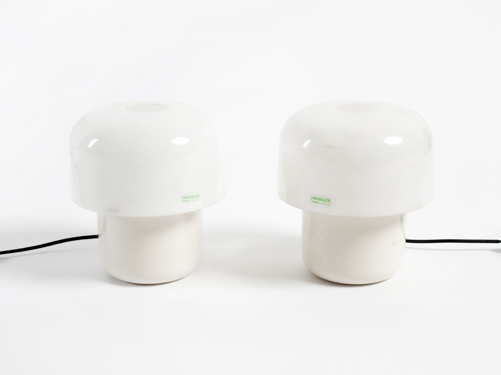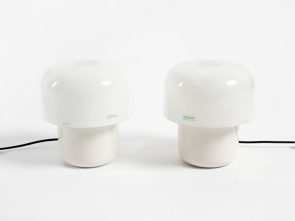 GUZZINI ILLUMINAZIONE Coppia di lampade da tavolo. Metacrilato.. Cm 11x22x22. Etichetta della manifattura. Anni Settanta.