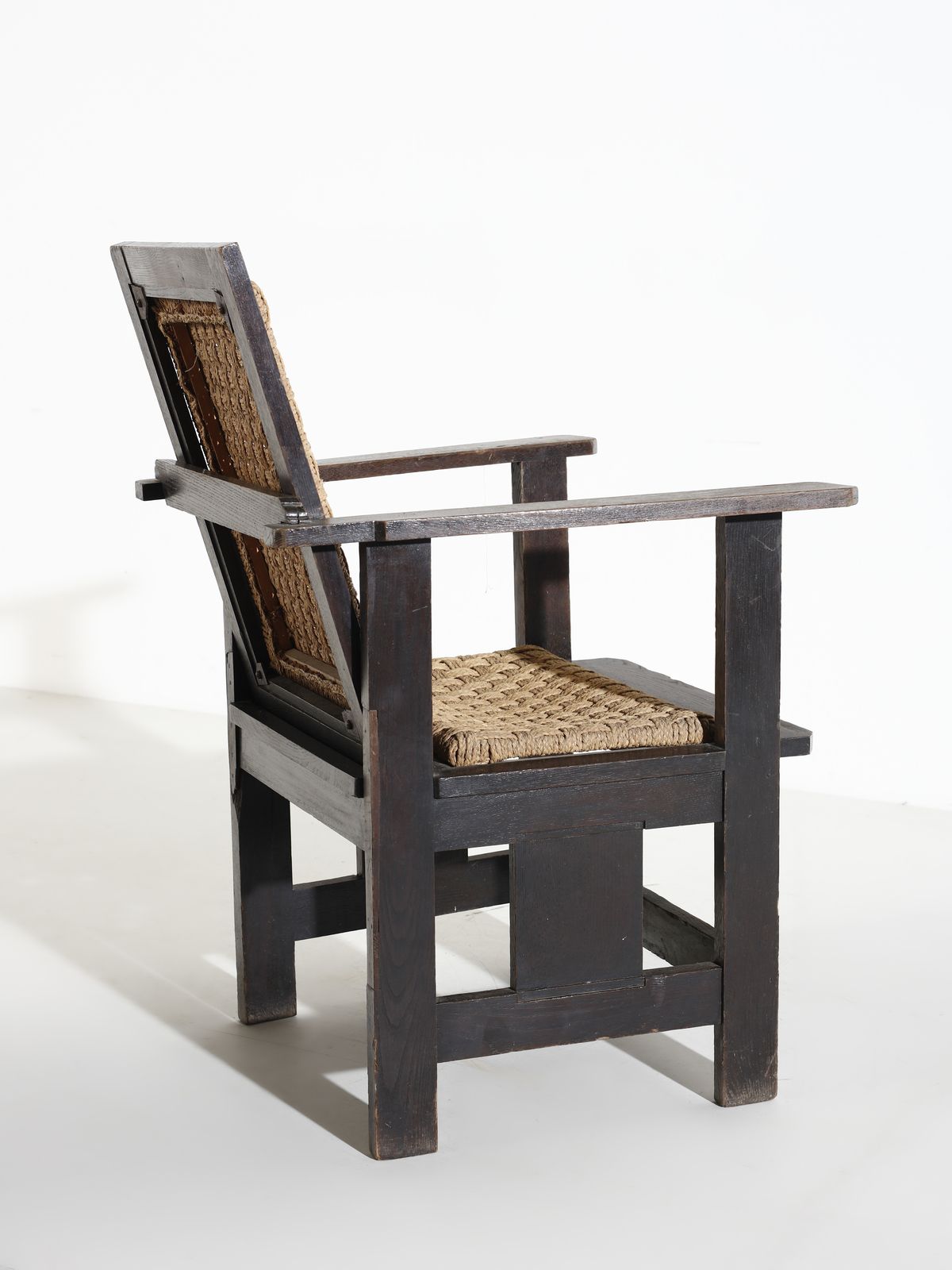 MANIFATTURA ITALIANA Coppia di poltrone. Legno e paglia.. Cm 97x70x63. Anni Trenta.