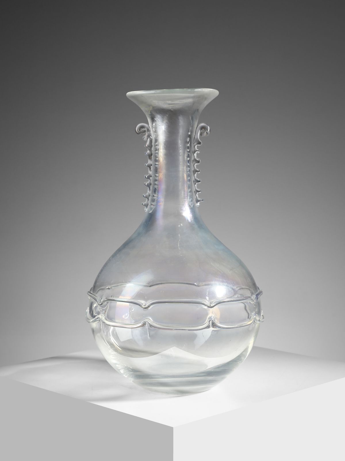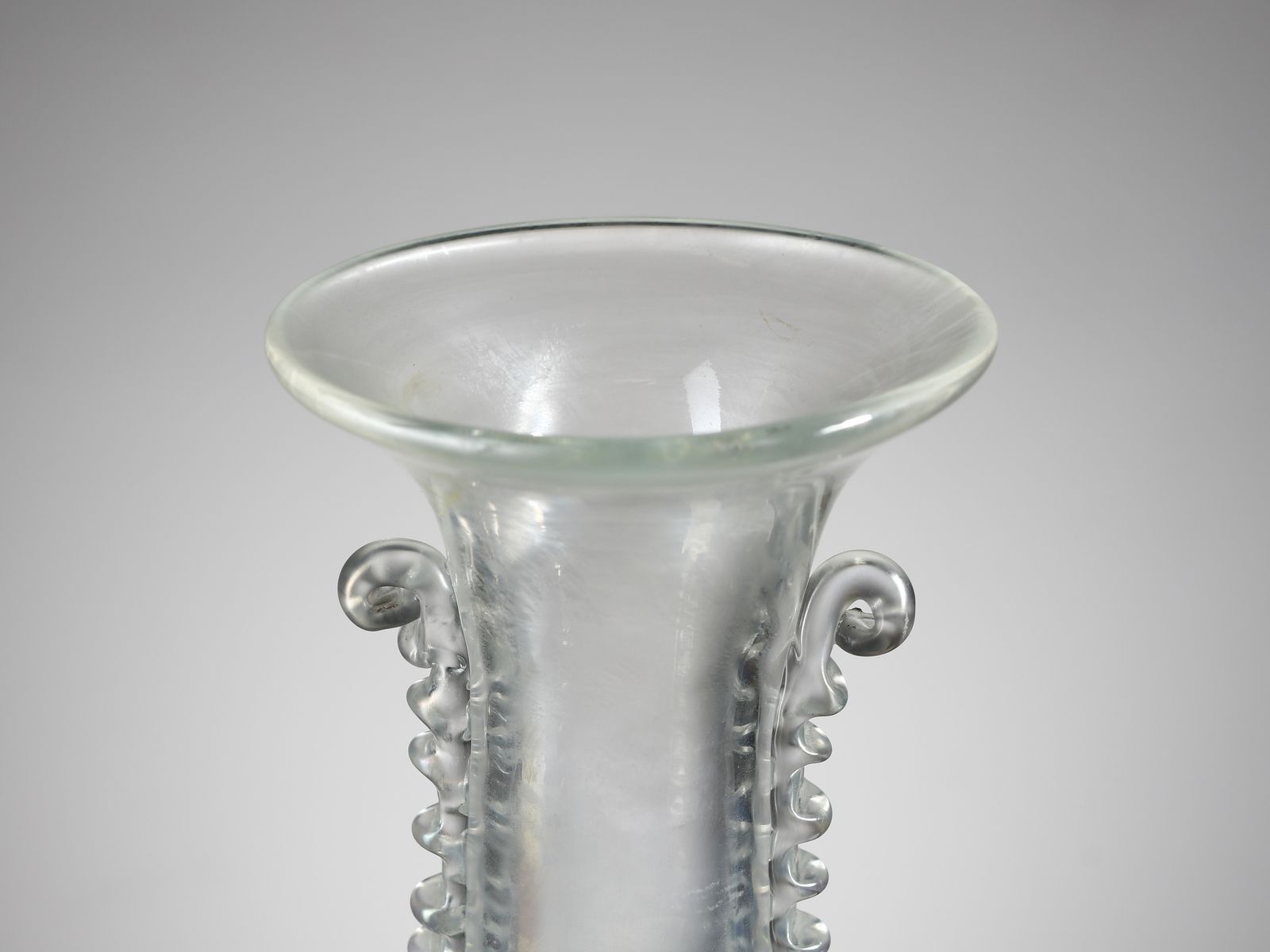 Grande vaso a collo allungato decorato con morise e fili di vetro orizzontali, Murano [..]