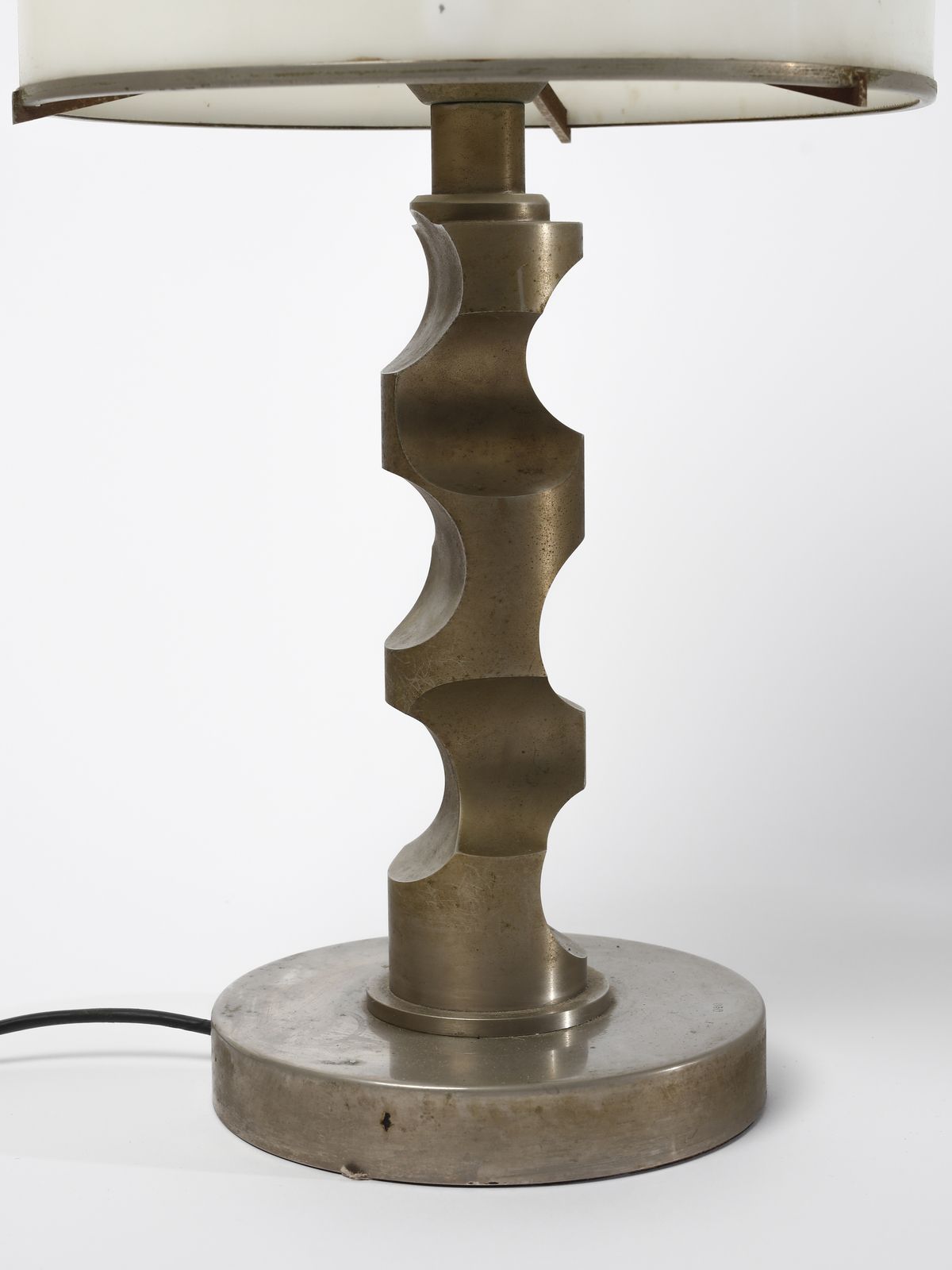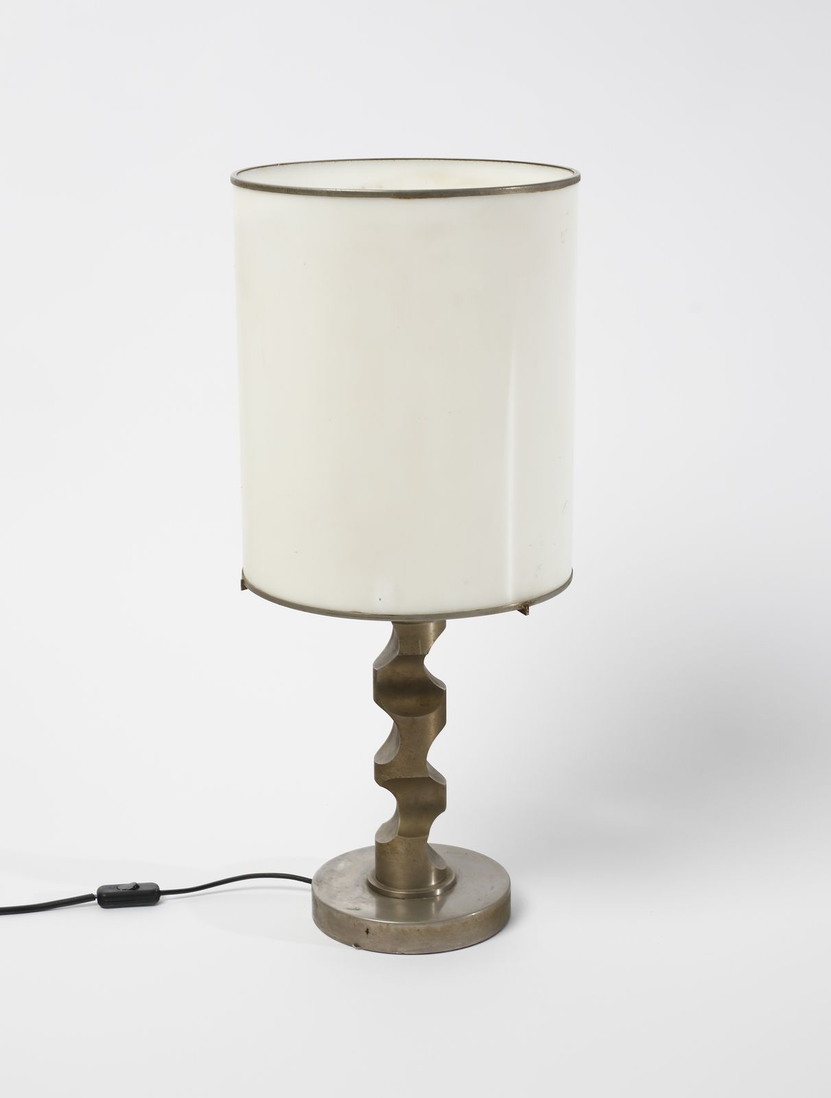 MANIFATTURA ITALIANA Lampada da tavolo. Metallo nichelato e perspex.. Cm 70,50x30x30. Anni Sessanta.