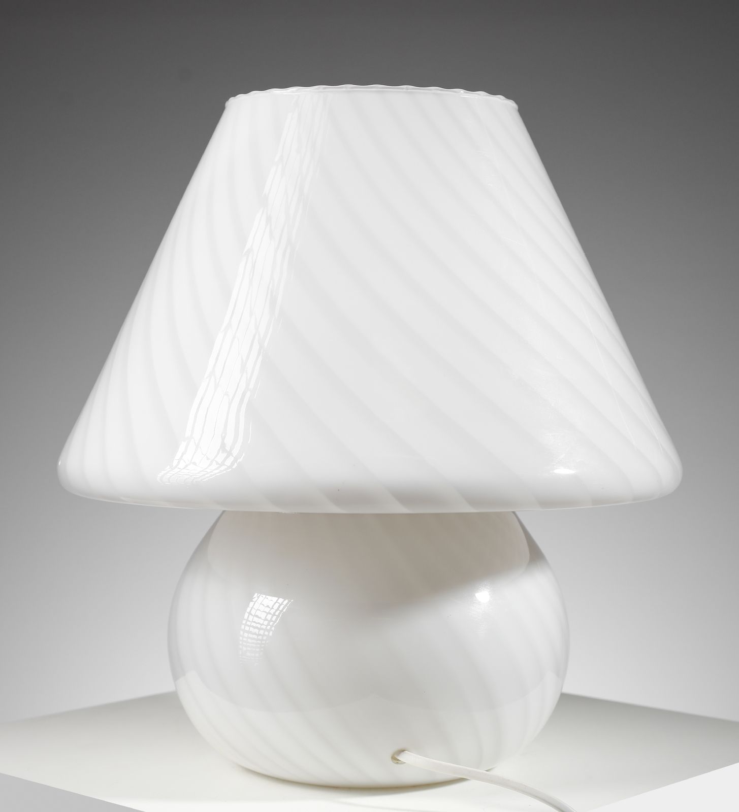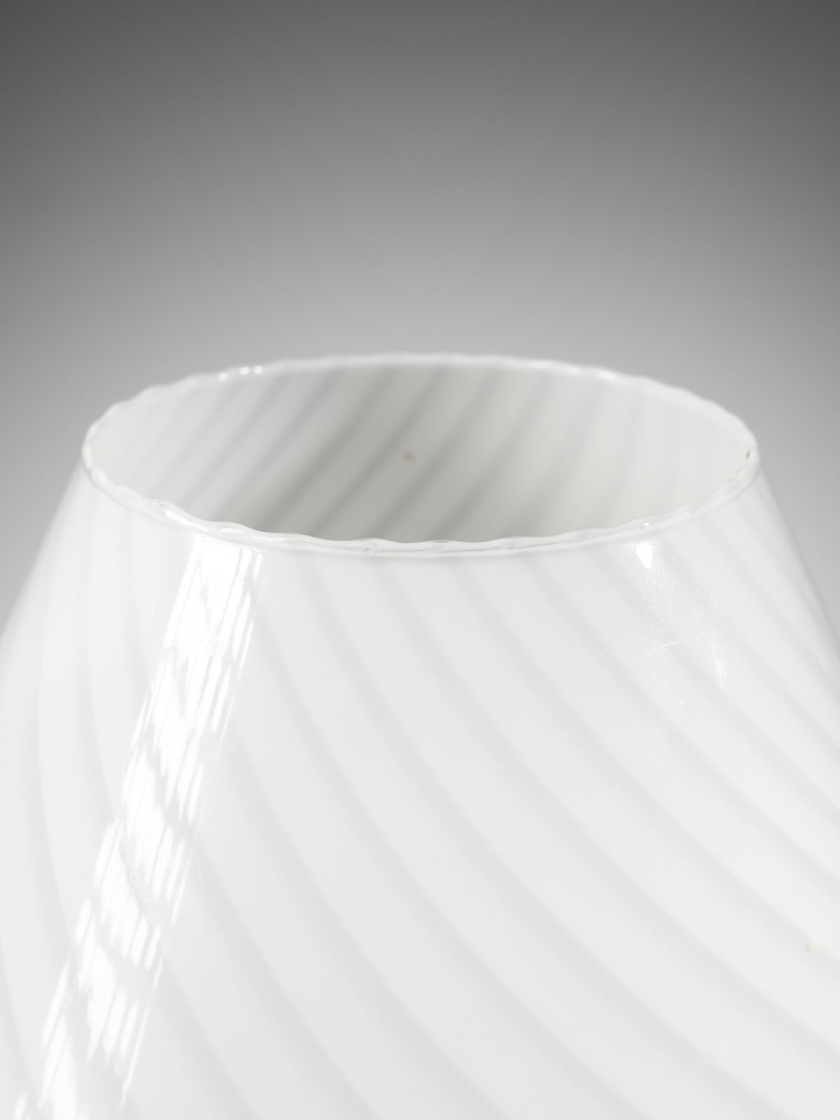 MANIFATTURA ITALIANA Lampada da tavolo. Vetro a fasce sfumate lattimo.. Cm 28x24x24. Anni Ottanta / Novanta.