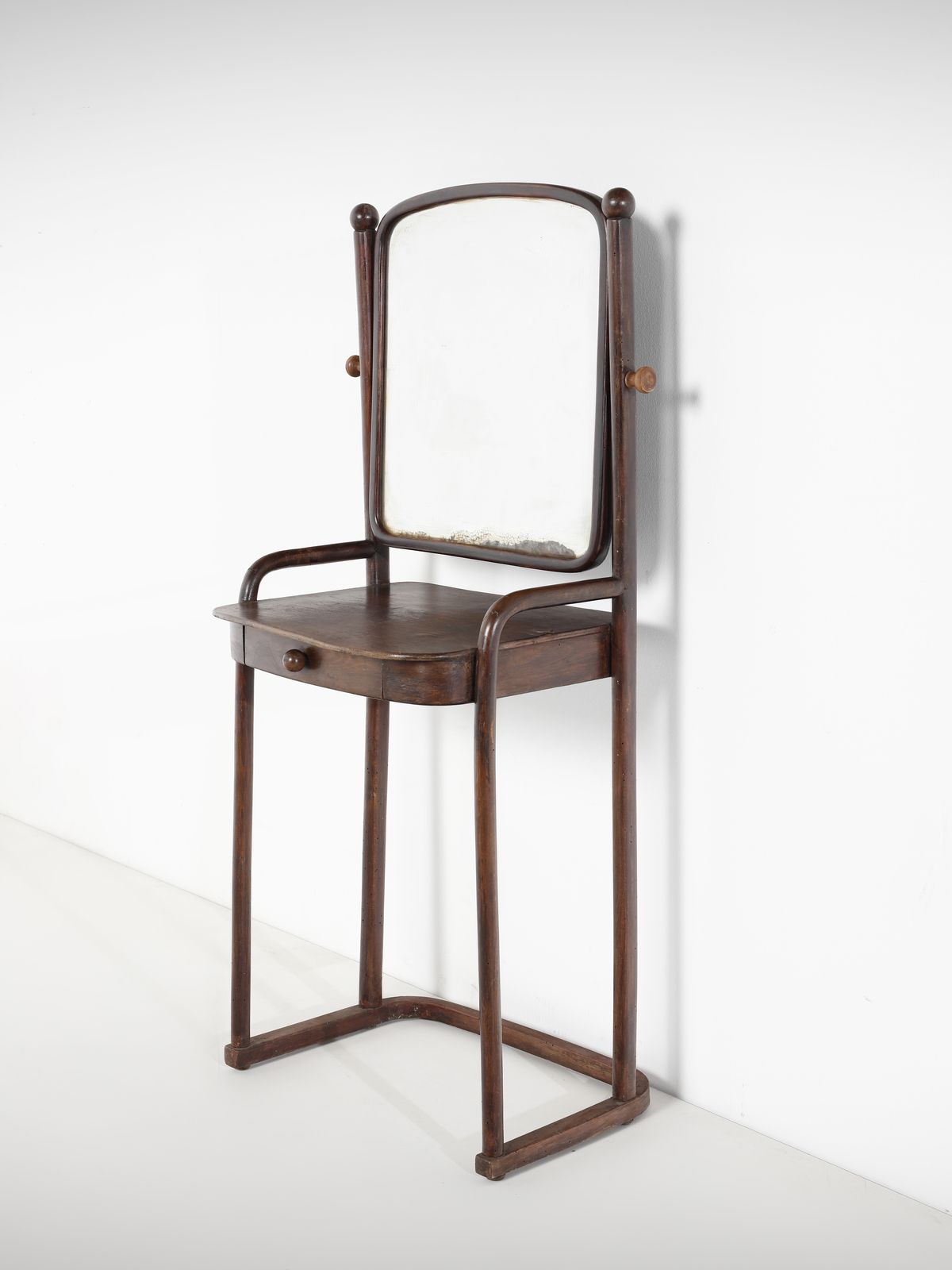 HOFFMANN JOSEF (1870 - 1956) Mobile da toeletta per J&J Khon. Legno di faggio curvato e specchio.. Cm 146x59x36. Primi del Novecento.
