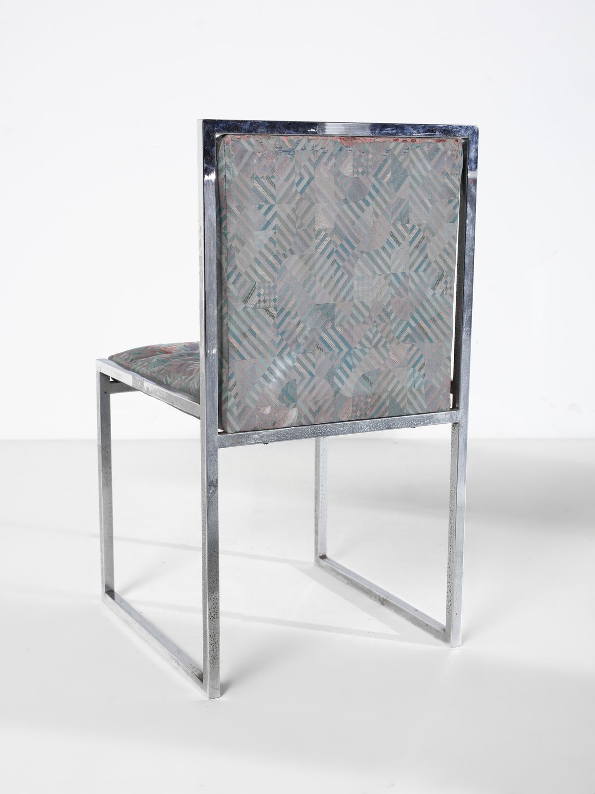 REGA ROMEO (1925 - 1984) Quattro sedie . Acciaio cromato e tessuto imbottito.. Cm 84,50x46x49. Anni Settanta.