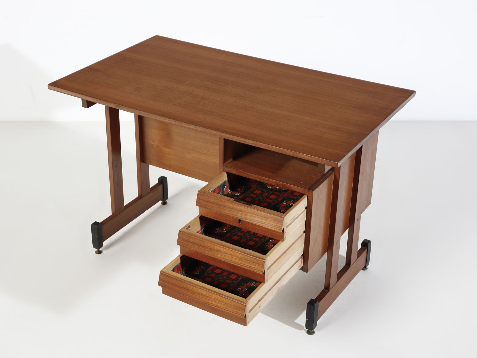 MANIFATTURA ITALIANA Scrivania. Legno di teak.. Cm 75x116x67. Anni Sessanta.