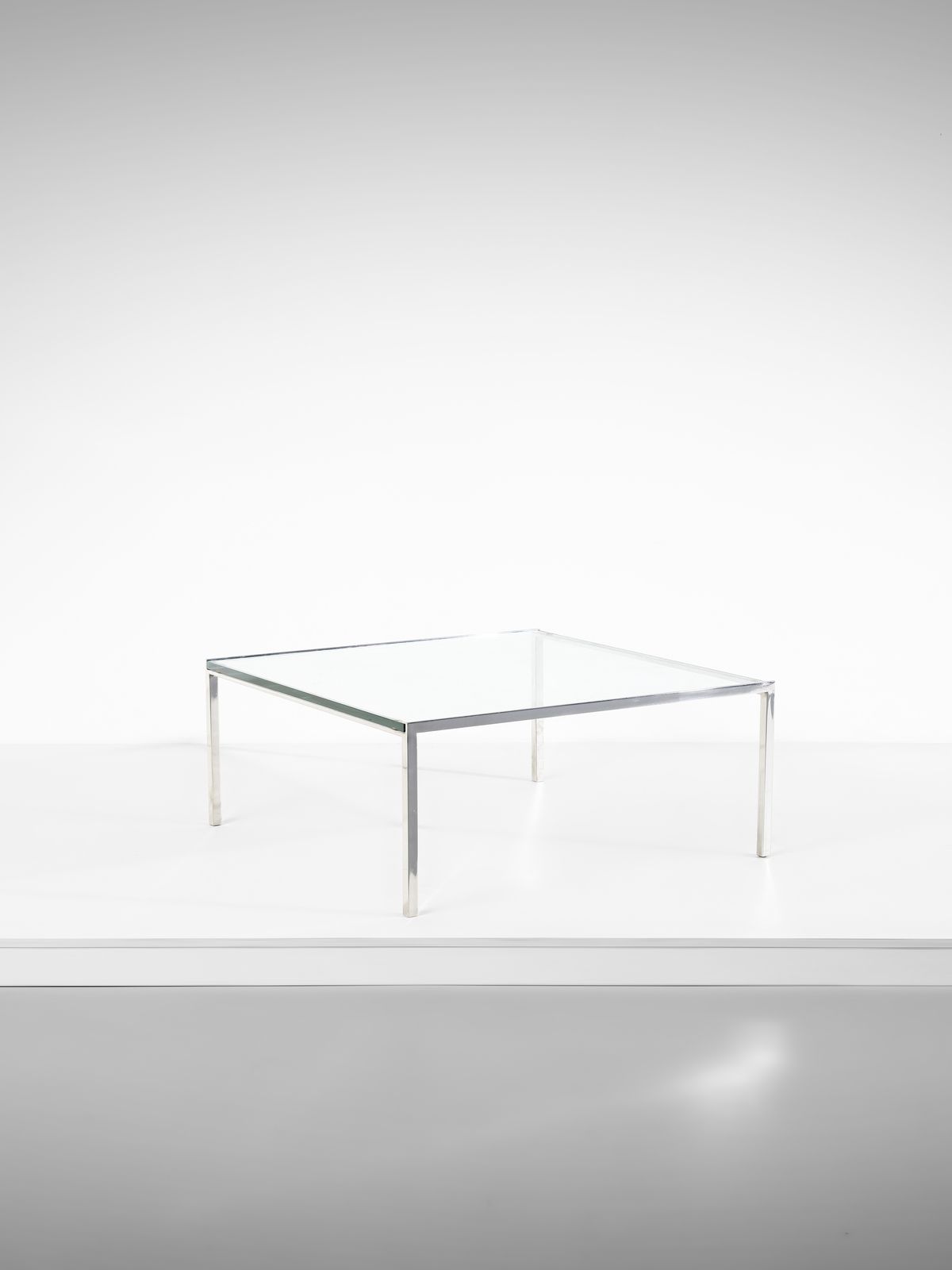 KNOLL BASSETT FLORENCE (1917 - 2019) Tavolino da salotto per Knoll. Metallo cromato e vetro.. Cm 42x100x100. Anni Sessanta.