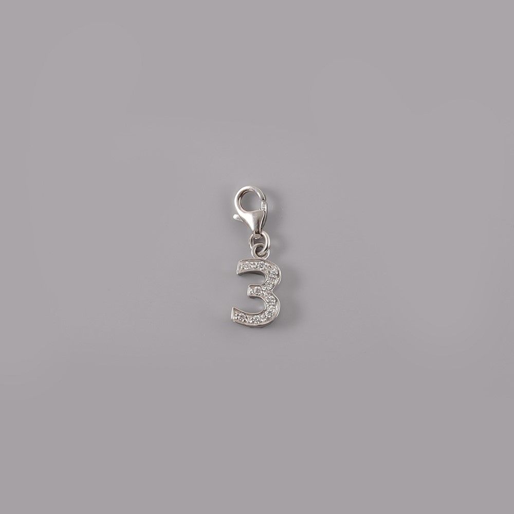 numero '3' in oro bianco e brillanti, gr. 1,9. Dimensioni 1 x 0,8 cm ca.