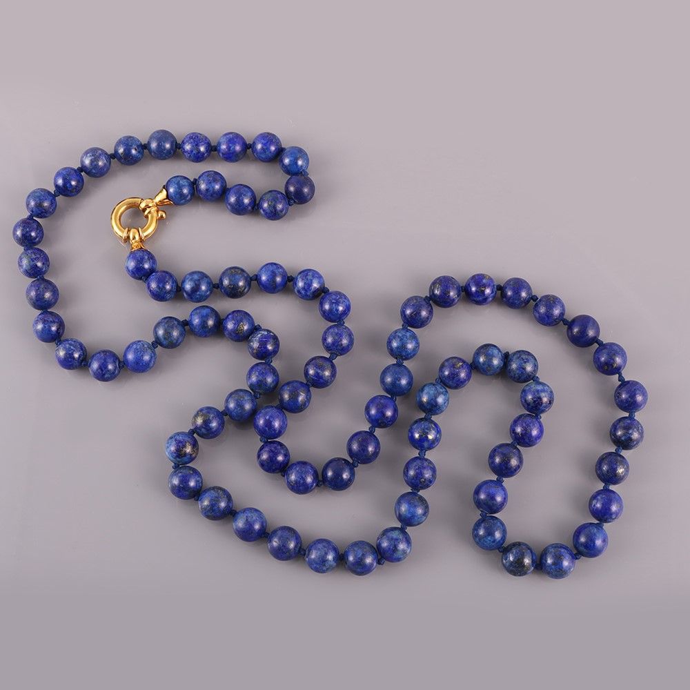 a un filo di sfere in lapislazzuli con chiusura in oro giallo. Lunghezza 96 cm