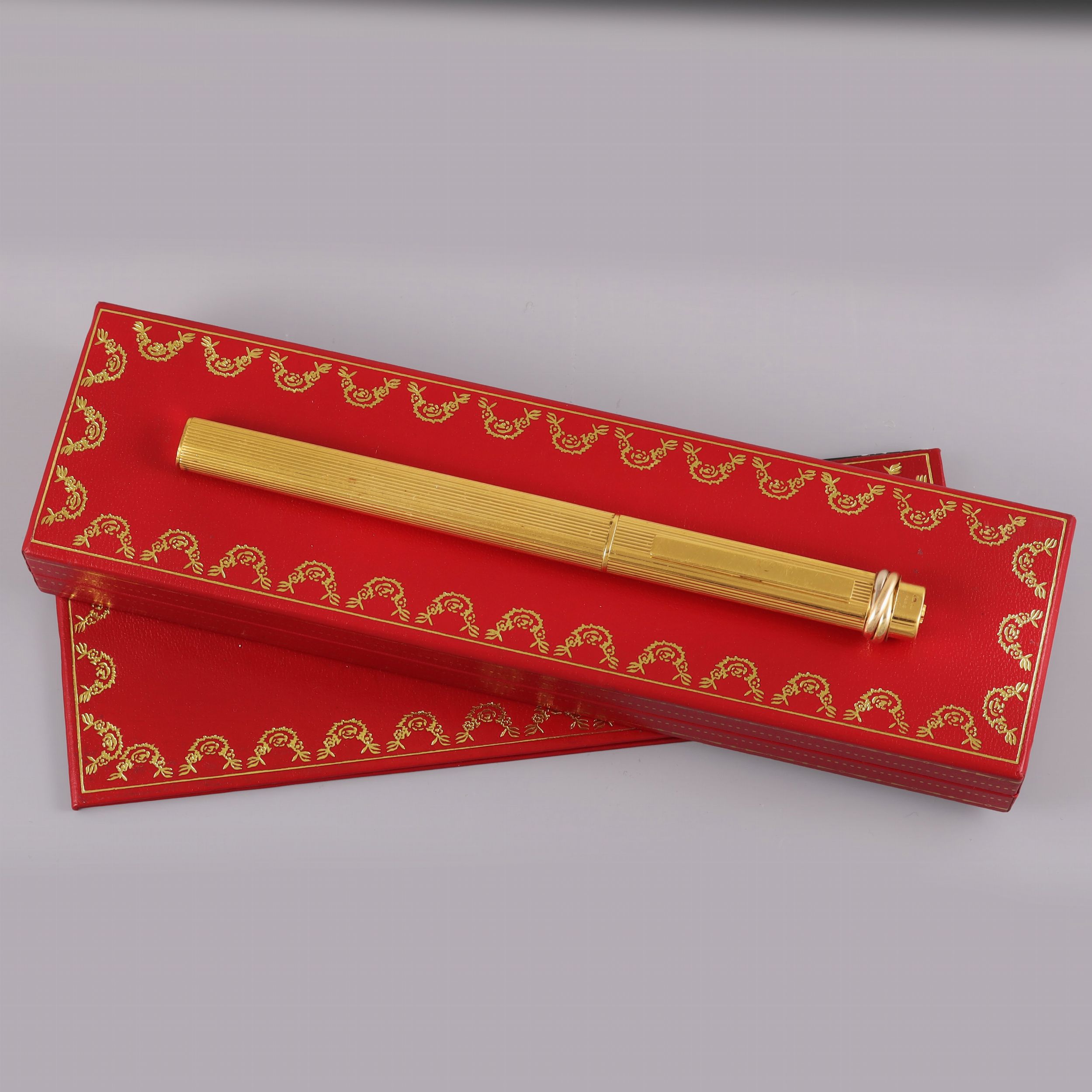 a sfera placcata oro. Corredata da custodia originale e garanzia. Firmata: Cartier Paris Numerata: 100406 Nota: La penna necessita di sostituzione del refill