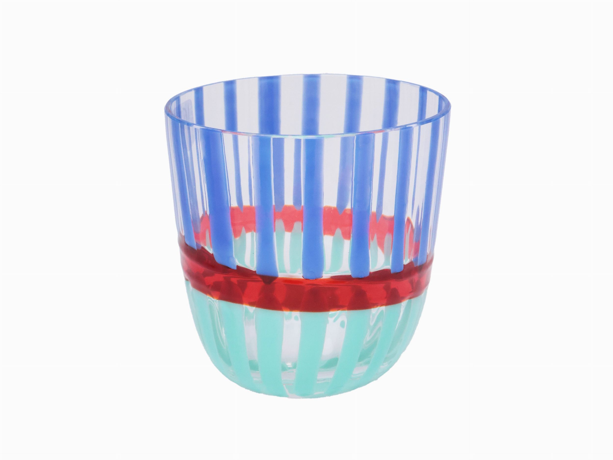 Murano, 2009 bicchiere da acqua di forma ovale, realizzato a cannette multicolore, entro scatola originale, inusato