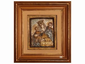cm 30x25 Italia centrale, XVIII secolo placca in maiolica policroma, in cornice