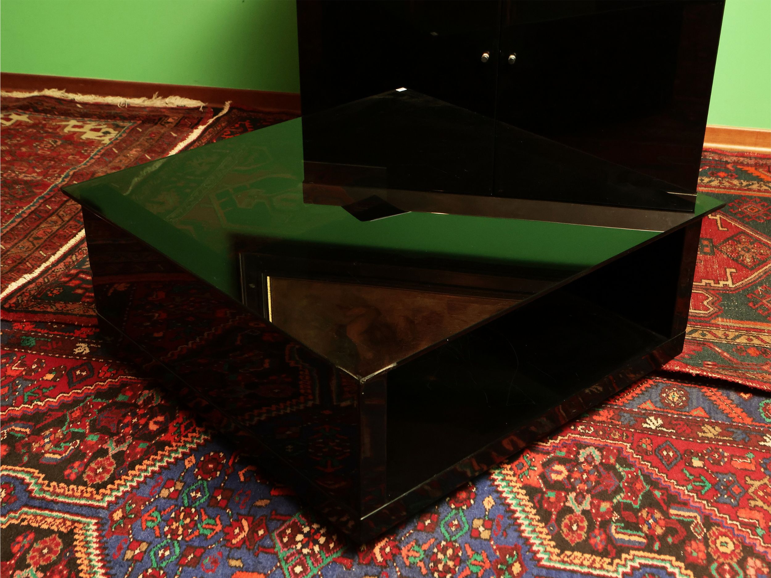 Anni Ottanta realizzato in legno laccato nero con piano in vetro