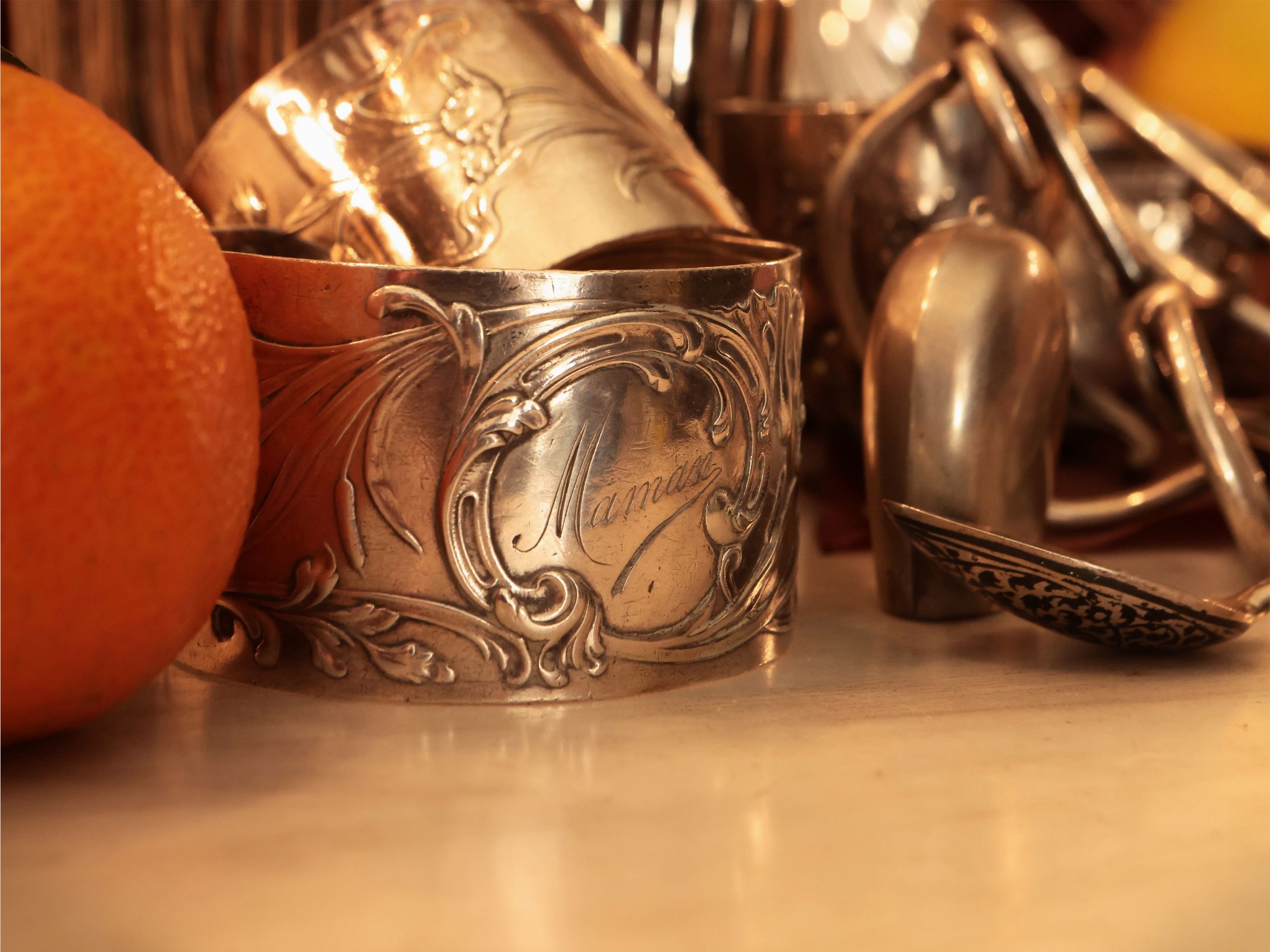 XIX/XX secolo tra cui una serie di legatovaglioli e tre antichi cucchiaini, uno dei quali niellato