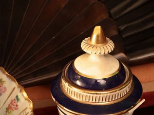 XIX/XX secolo tra cui una piccola incisione in cornice, uno svuotatasche in porcellana dipinto con fiori Limoges ed un vaso in porcellana di Sevres, dipinto in policromia e con coperchio modellato come fiori a tutto tondo