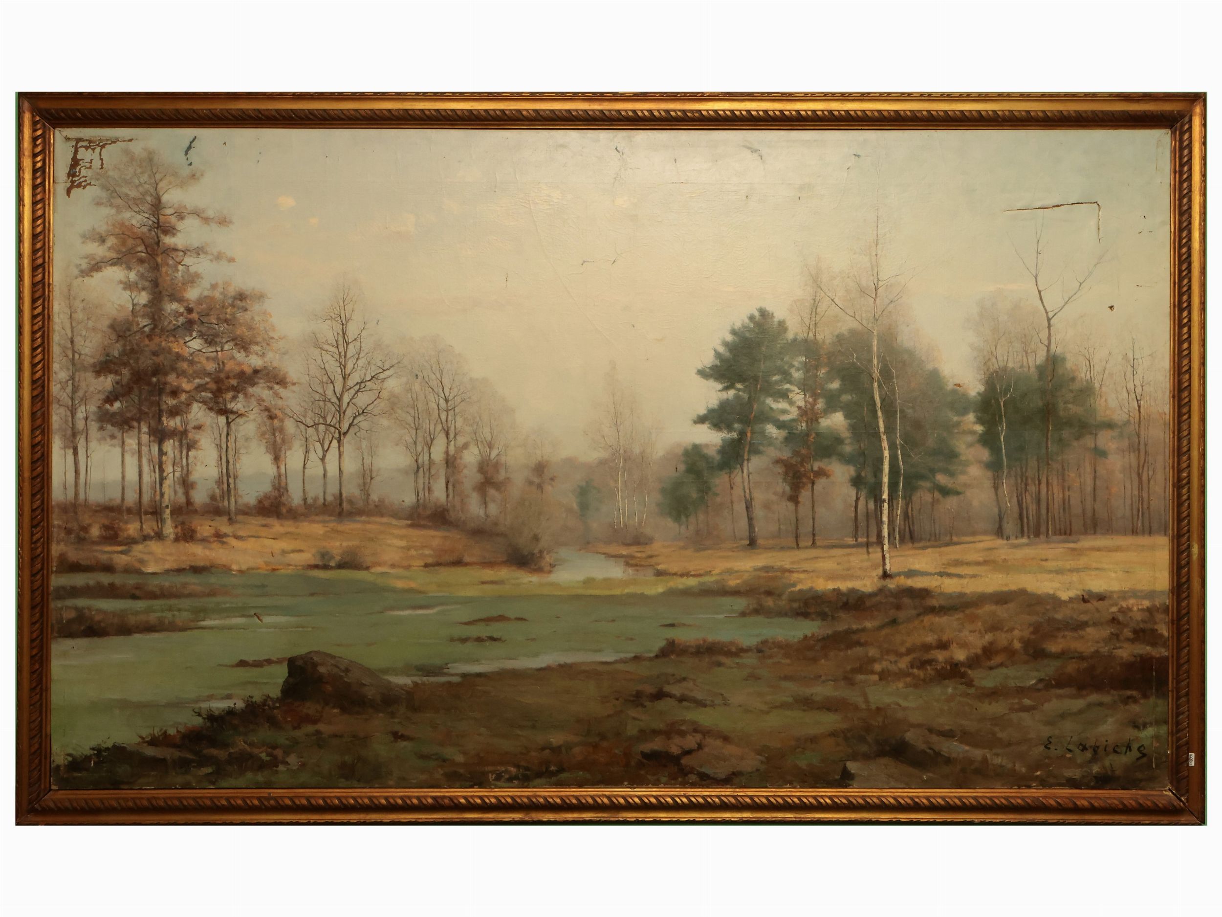prima metà del XX secolo grande dipinto ad olio su tela (lacerazioni), firmato E. Labichs, in cornice, alcuni difetti