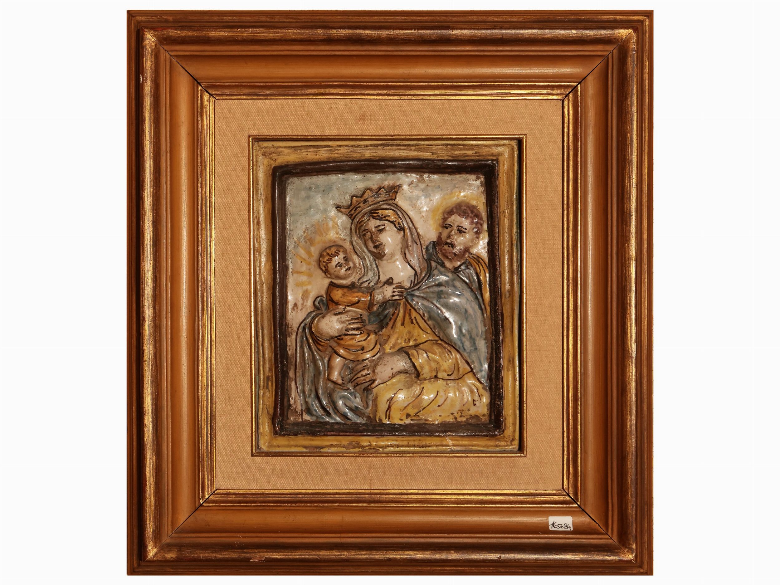 Italia centrale, XVIII secolo placca in maiolica policroma, in cornice