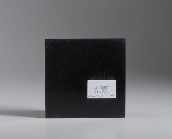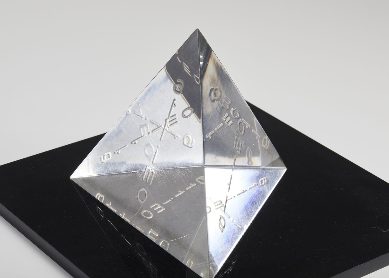 sotto la base: etichetta con dichiarazione di autenticità firmata dalla moglie dell'artistaesemplare unicoL'opera si compone della base e della piramide che le poggia sopra Prototipo del 1975, appartenente alla serie delle 'poesie a tre dimensioni', o 'Corpi di Poesia'L'opera è accompagnata da autentica su fotografia a cura di Luciana Lora TotinoBIBLIOGRAFIAG. Maffei, P. Paterlini, Arrigo Lora Totino. La parola come poesia segno suono gesto 1962-1982, Torino 2015, p. 133PROVENIENZAEredi Lora Totino, CuneoCollezione privata, Torino