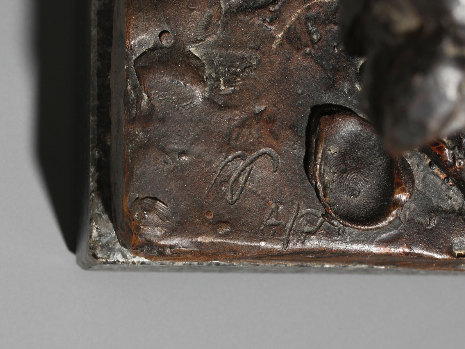 sigla, impronta dell'artista e punzone della Fonderia Luigi Tommasi, Pietrasanta. es. A/Pdimensioni senza base: 23x25x16,5PROVENIENZAOpera acquisita direttamente dall'artista dall'attuale proprietàCollezione privata, Pietrasanta