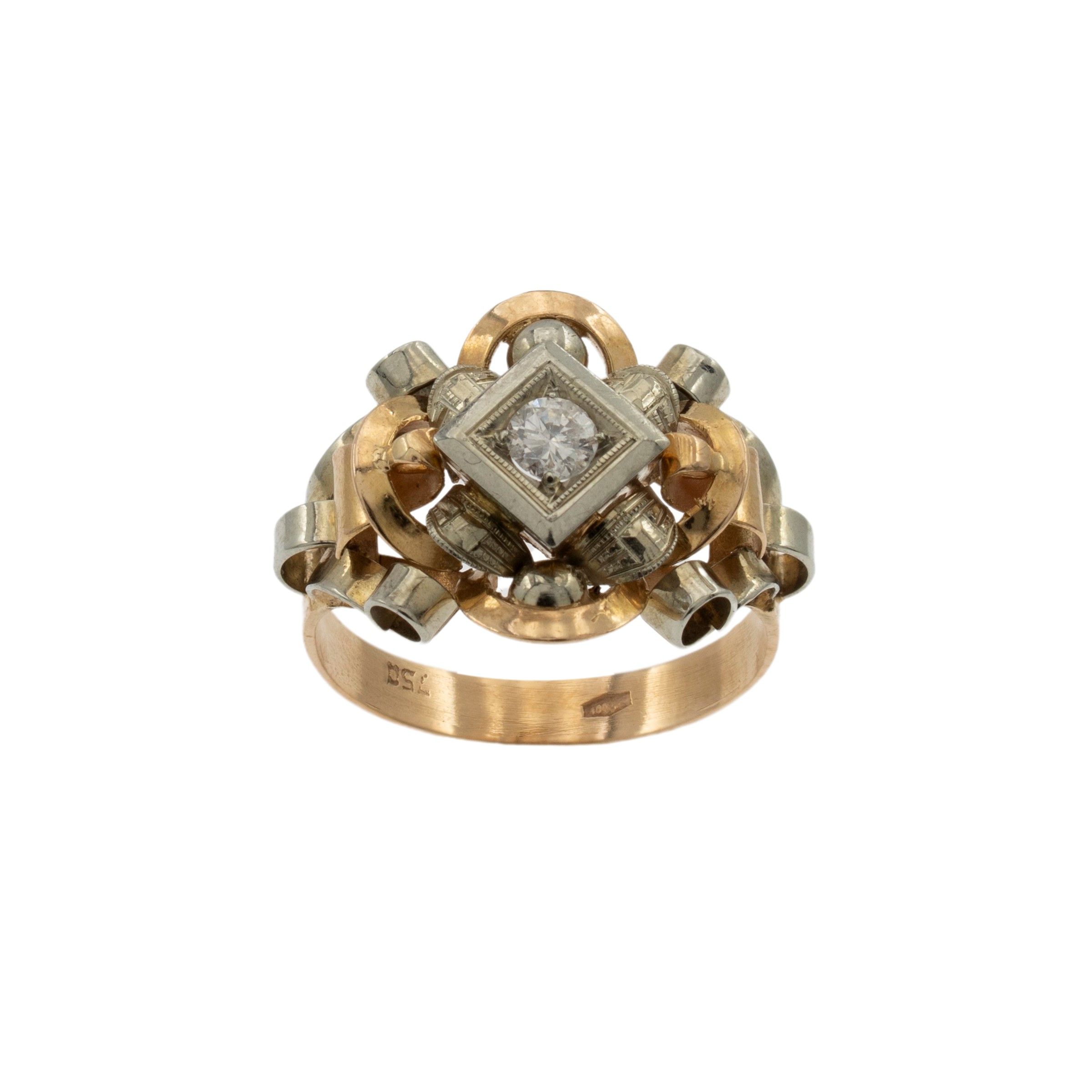 Antico anello in oro giallo e bianco 18kt e diamante